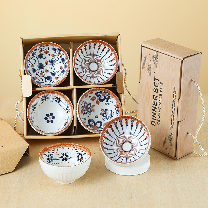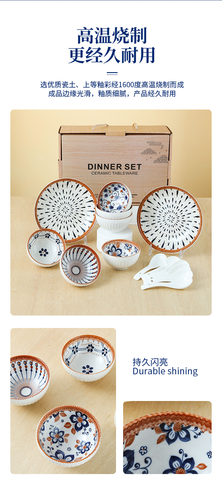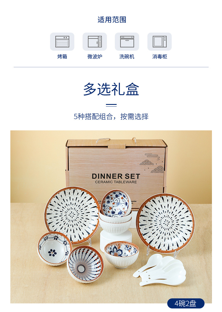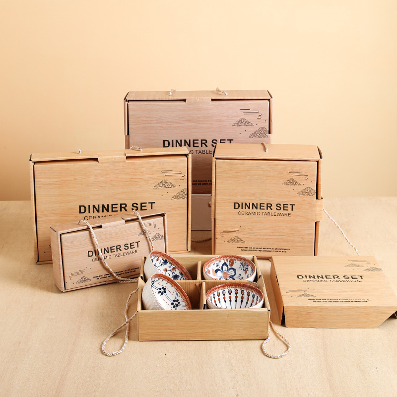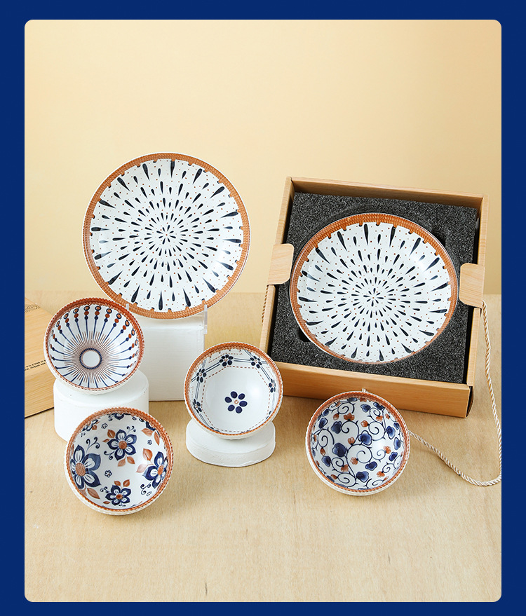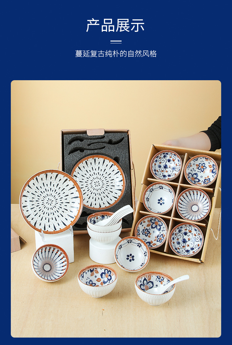 Japanese Ceramic Tableware Set of Dishes and Bowls Gift Box Real Estate Company Souvenirs Opening Gift Tableware