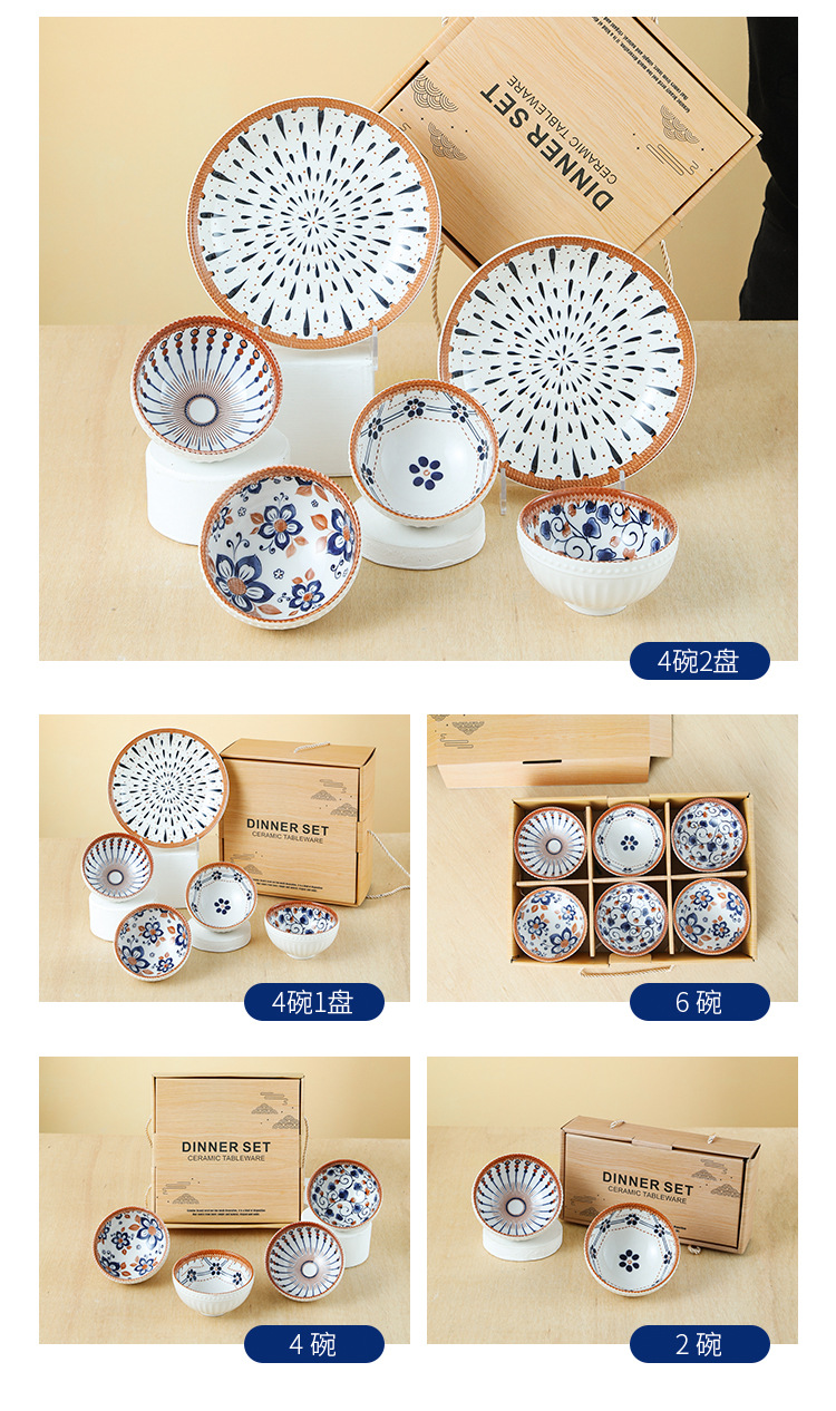 4 bowls and 2 plates (1 piece and 16 sets)(4碗2盘(1件16套)) USD $7.83 99915 set available