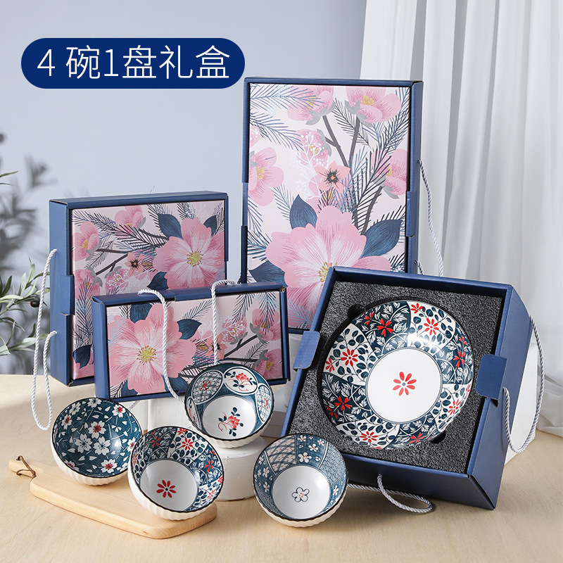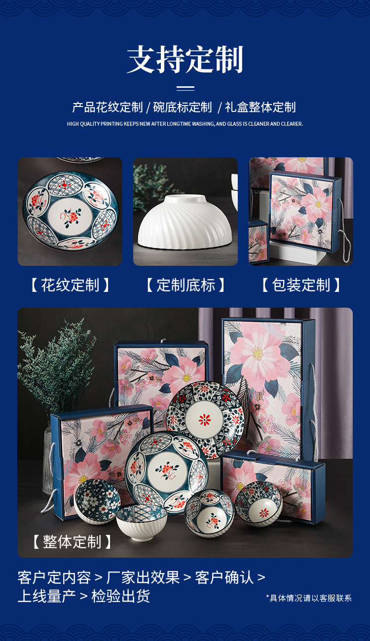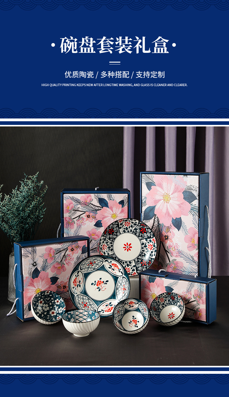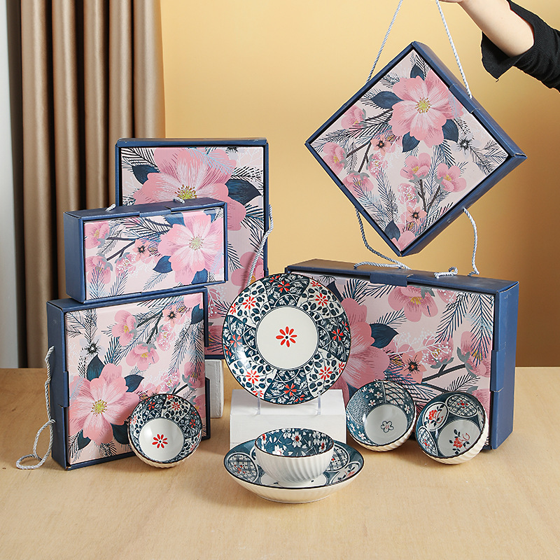 日式樱花风陶瓷餐具套装开业礼品碗盘勺套装房地产公司伴手礼