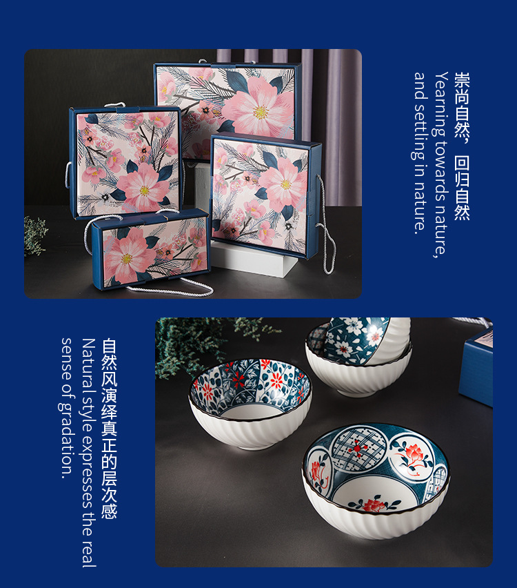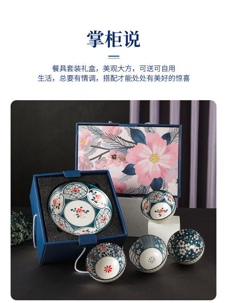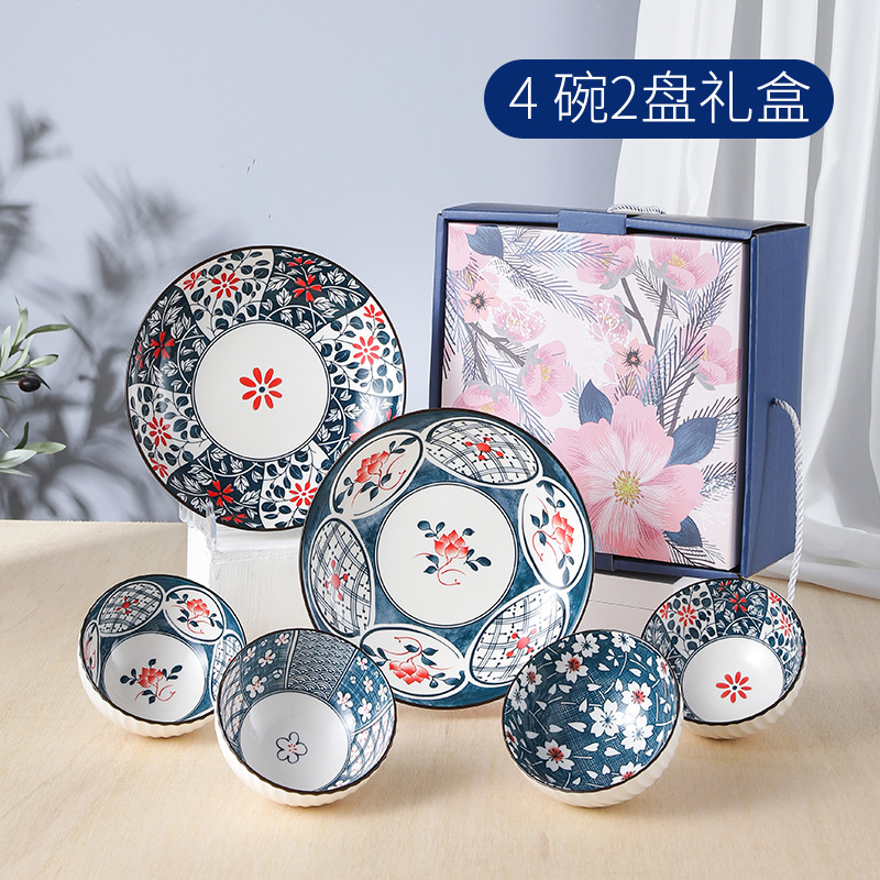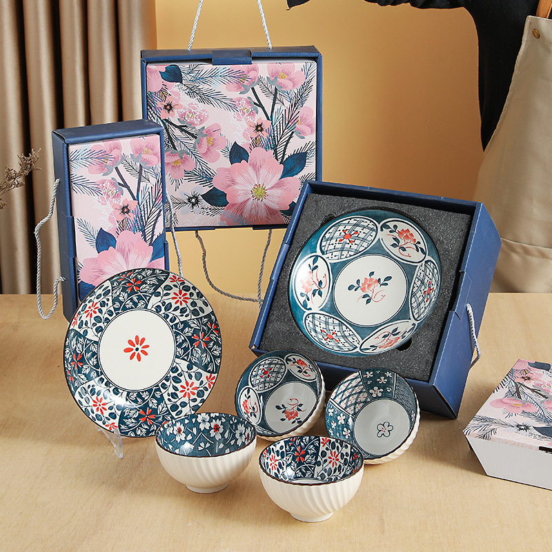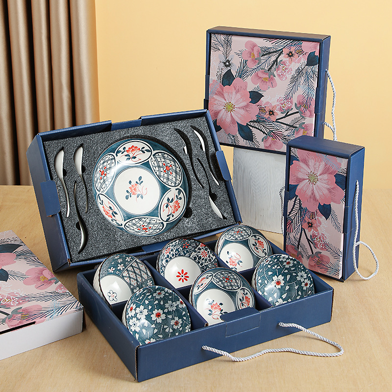日式樱花风陶瓷餐具套装开业礼品碗盘勺套装房地产公司伴手礼