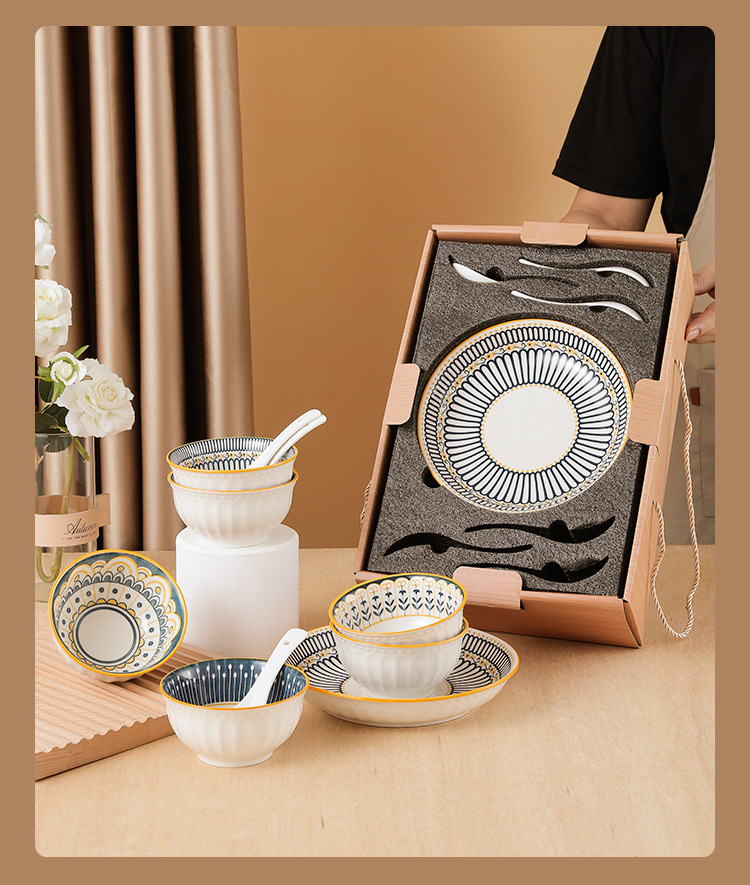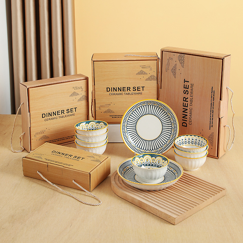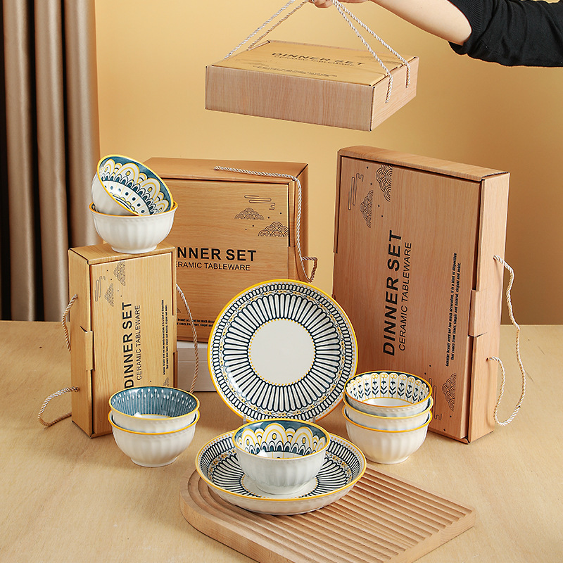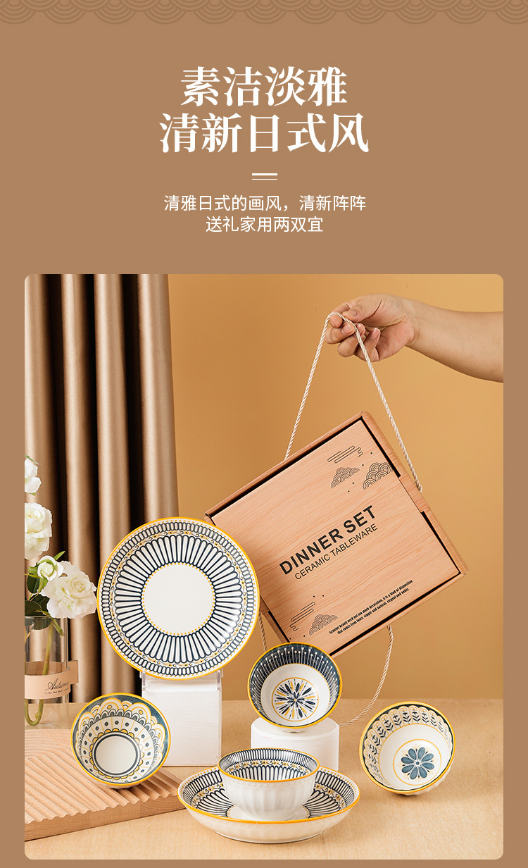 clear japanese style porcelain bowl plate chopsticks tableware gift box set movable hand mixing gift tableware