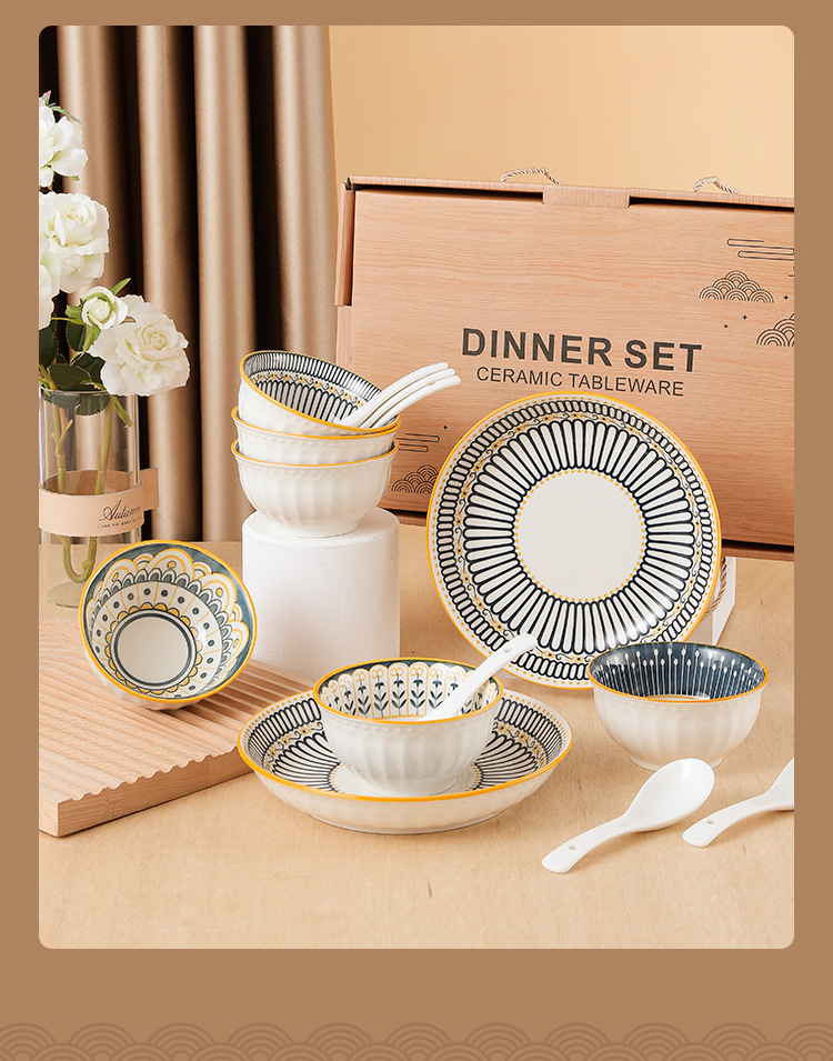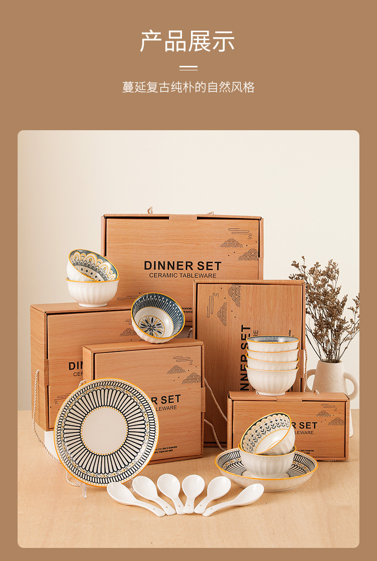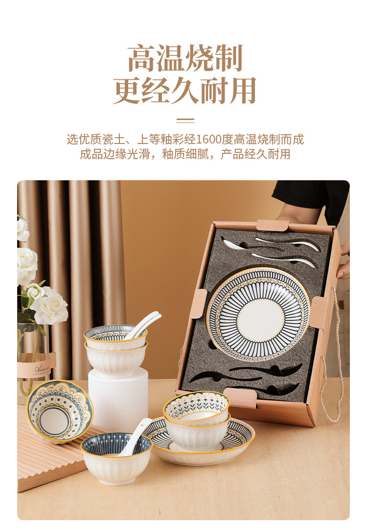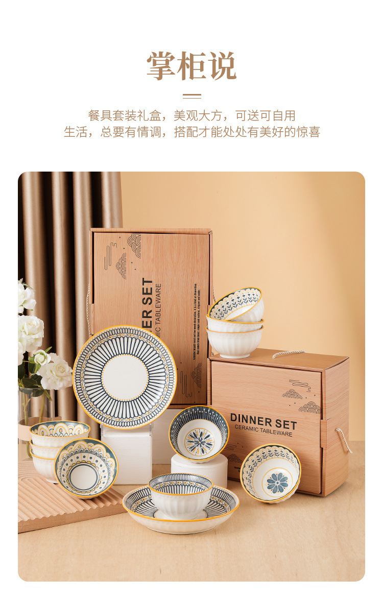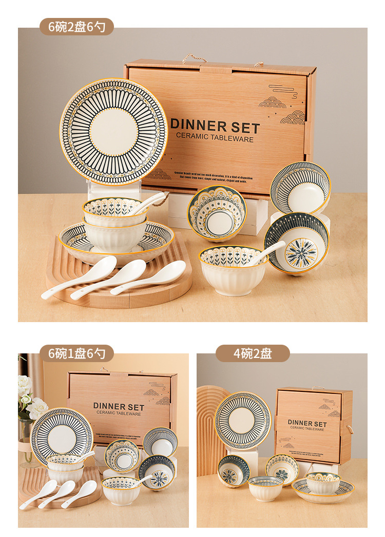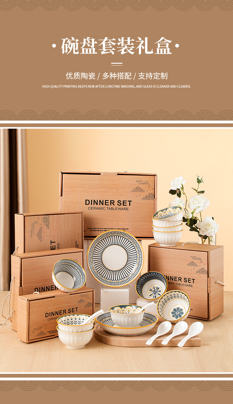 清晰日式风瓷碗盘勺餐具礼盒套装活动手拌礼品餐具