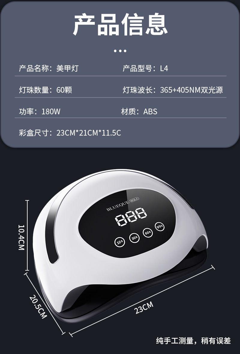 液晶触屏180W大功率美甲灯光疗机速干手提式便携指甲油胶烤灯感应