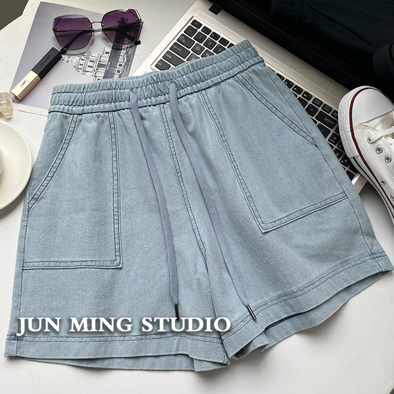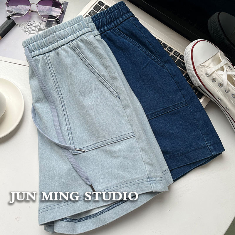 牛仔短裤女2023新款夏季薄款男阔腿裤子ins超火高腰a字辣妹热裤