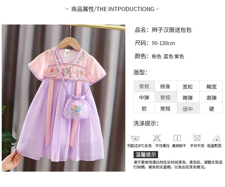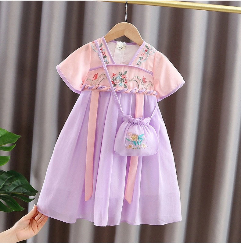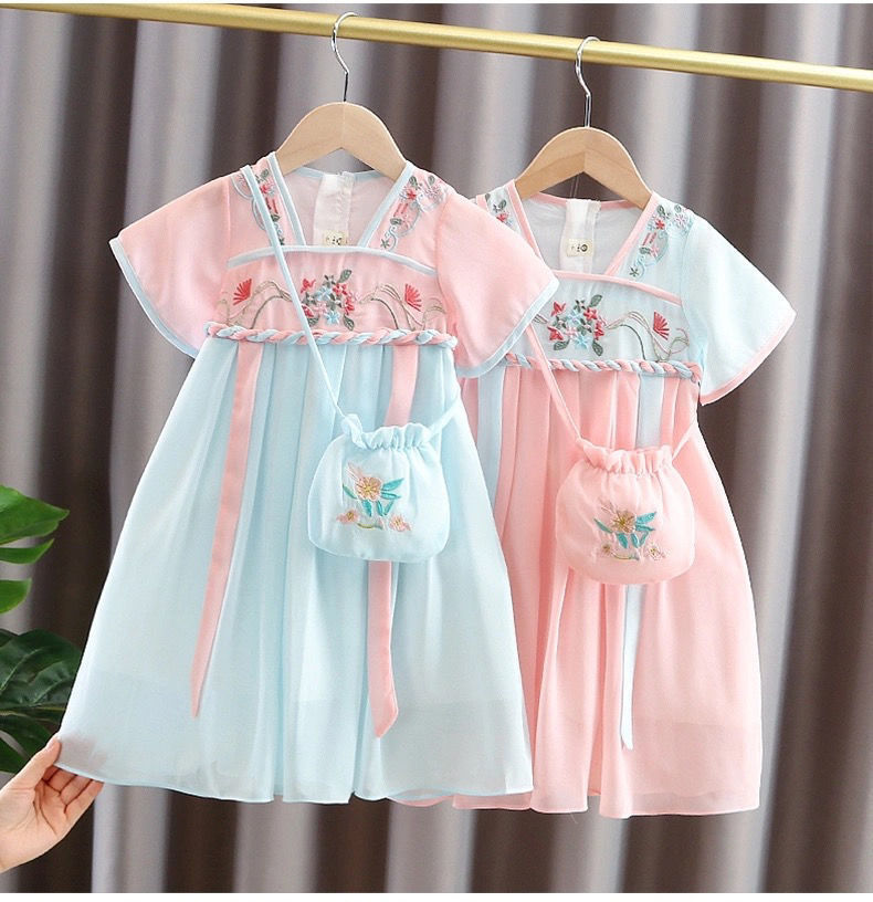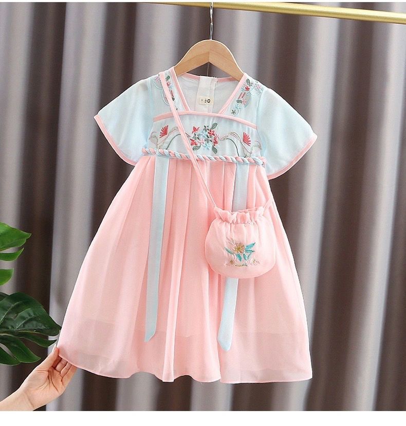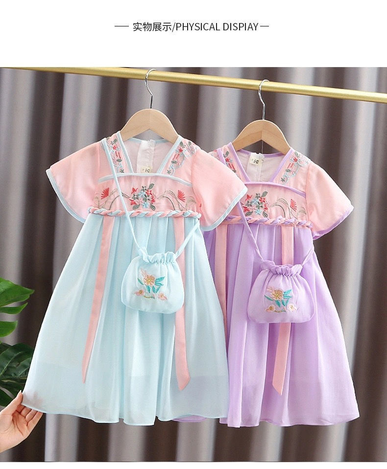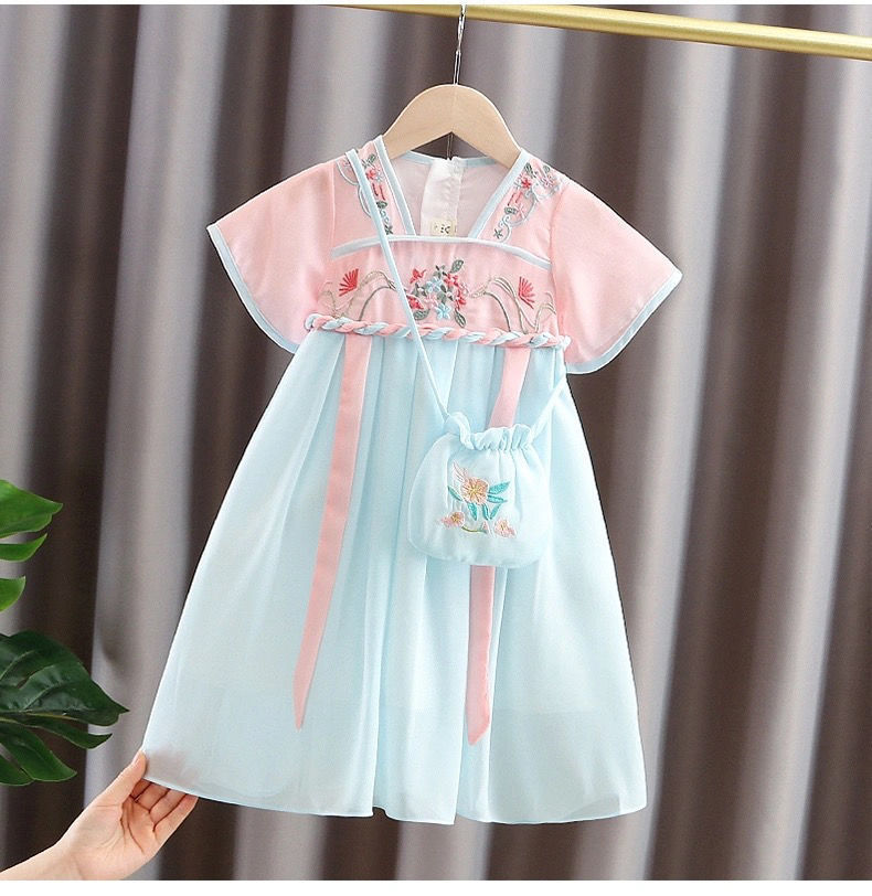 汉服女童连衣裙刺绣夏季薄款中国风短袖唐装儿童夏装古装襦裙