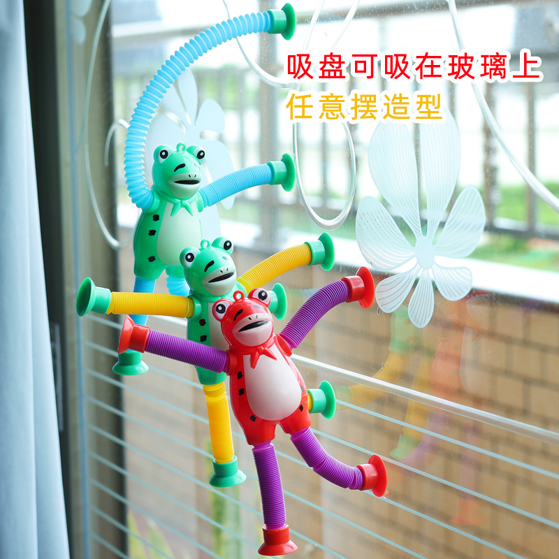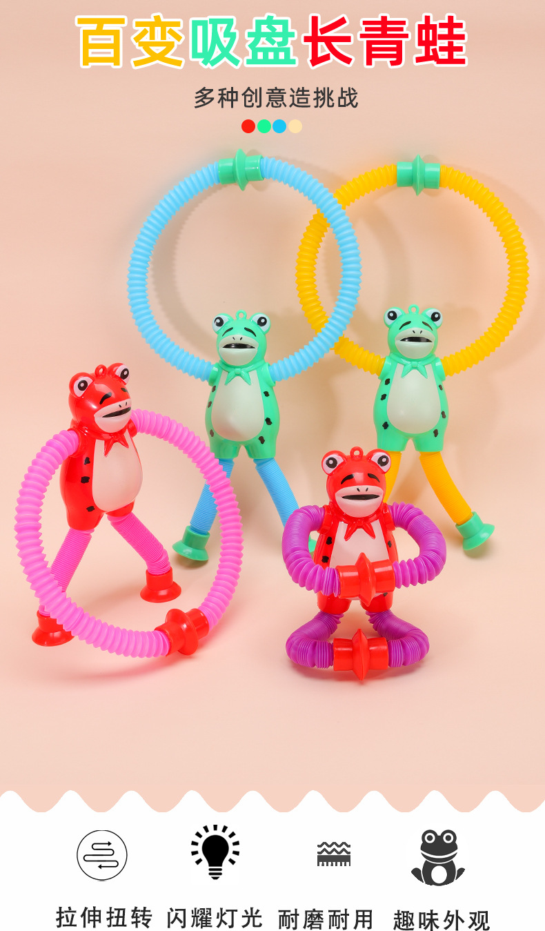 卡通解压百变吸盘拉伸管青蛙新奇特减压长颈鹿伸缩管发光玩具现货