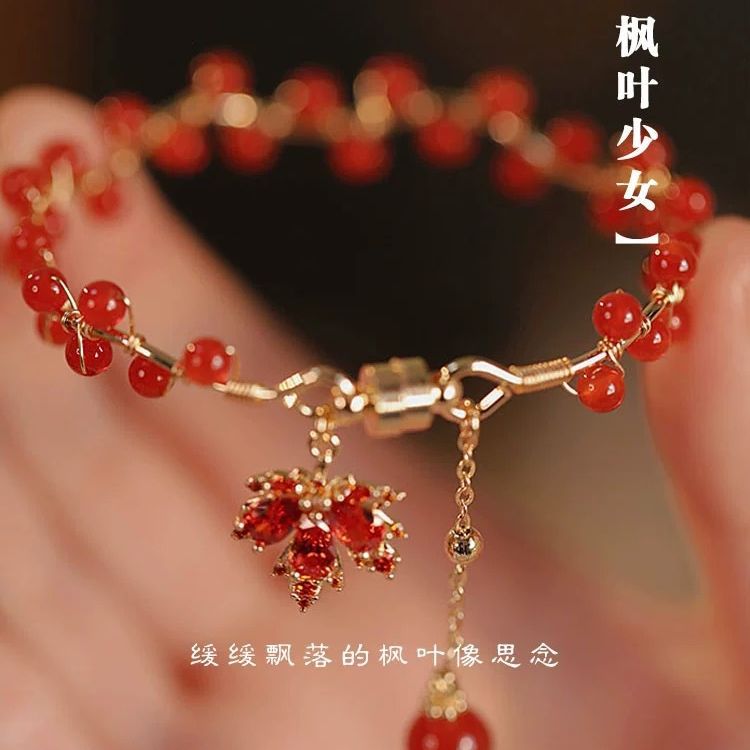 新中式回眸草莓晶手镯女小众设计手链生日礼物送女友百搭闺蜜手饰