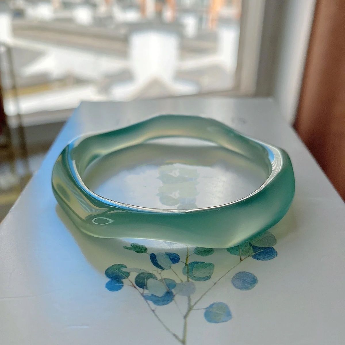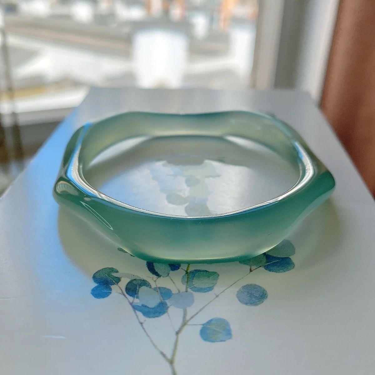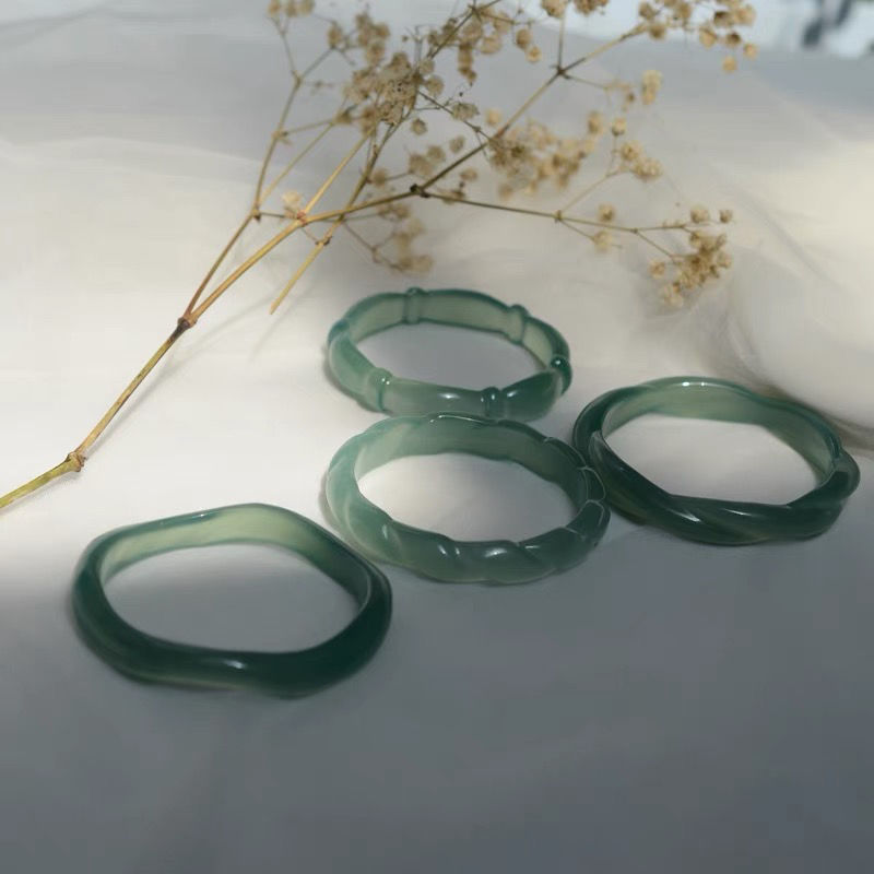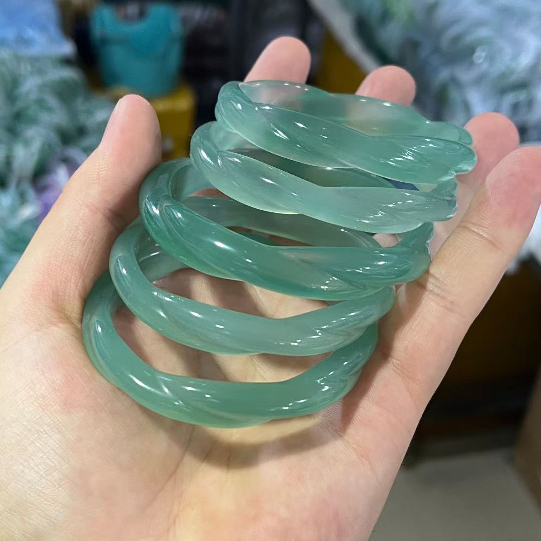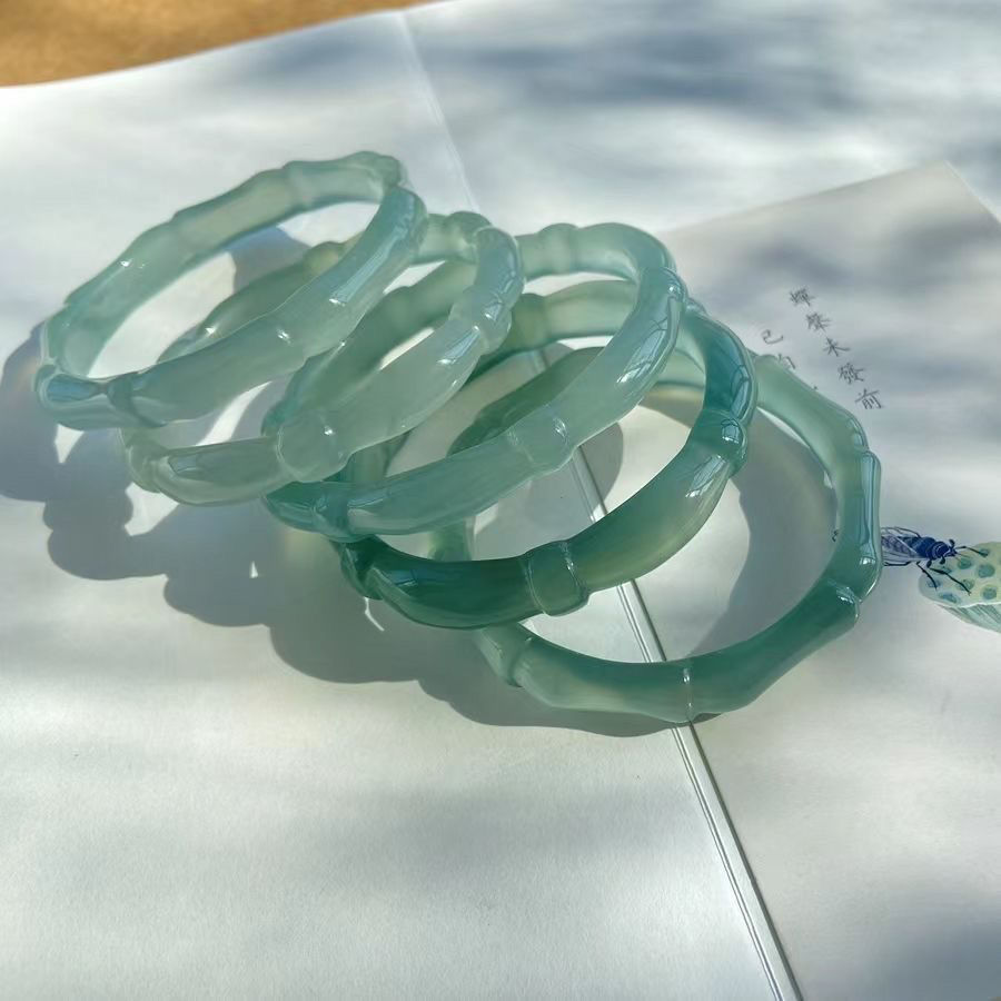 玉髓油青色波浪手镯湖水绿竹节镯随型玛瑙手镯麻花远山黛雕刻手镯