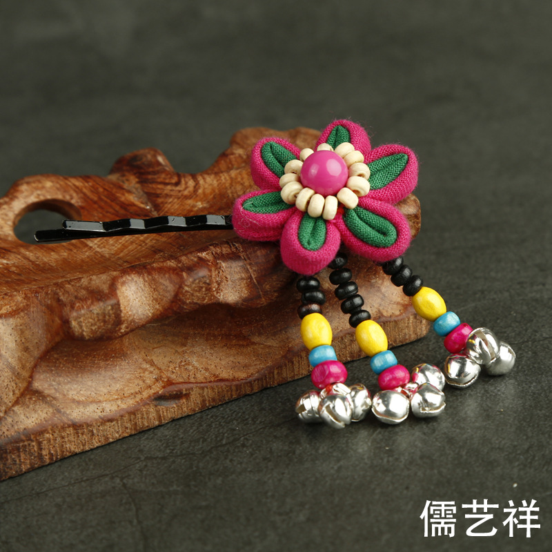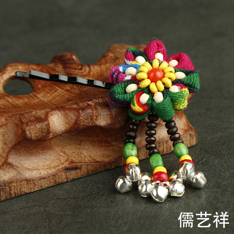 批发热卖民族风手工铃铛发夹布艺花朵发卡小饰品地摊景区热卖发夹