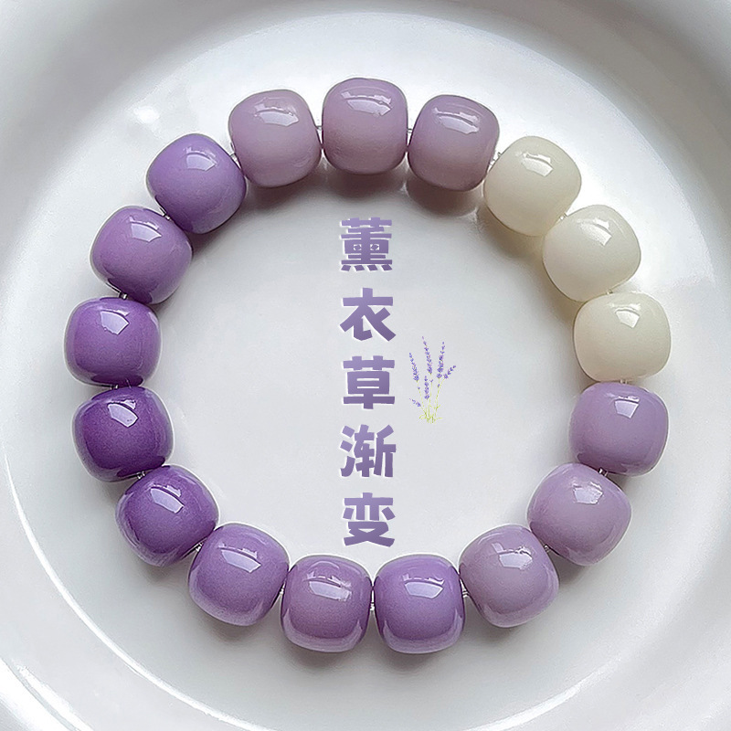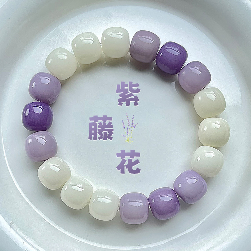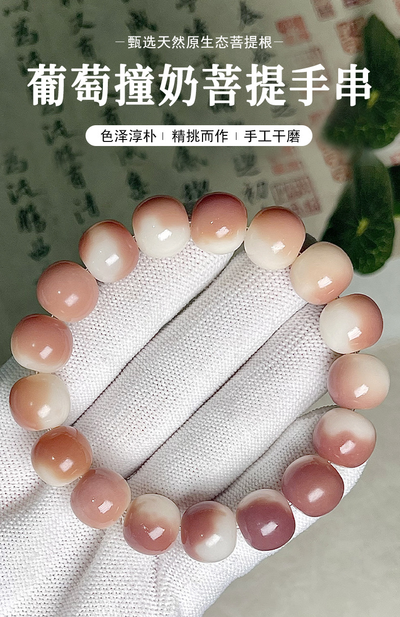 正品白玉菩提根手串稀有紫罗兰渐变精工高抛佛珠念珠男女手链批发
