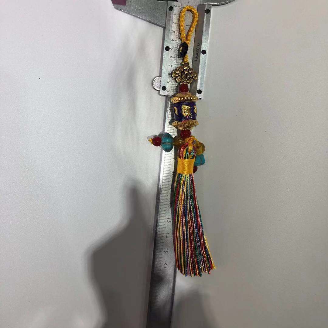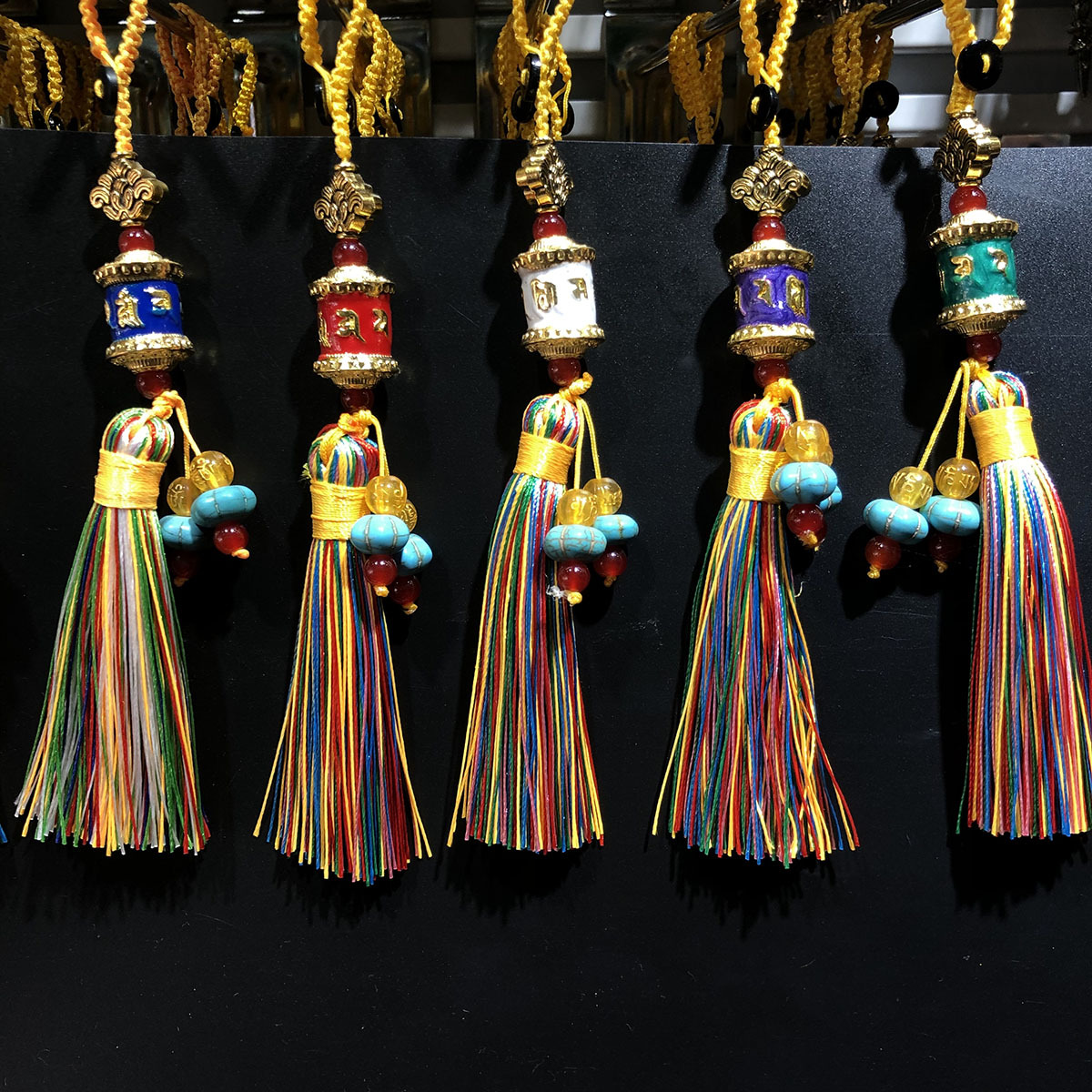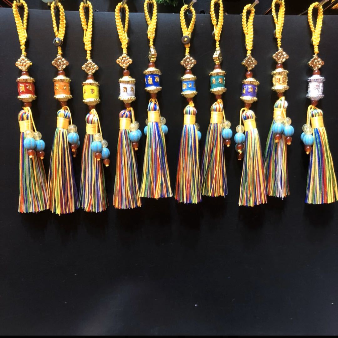 藏式六字真言十色彩绘小转经筒彩流苏汽车手机包包钥匙扣装饰挂件