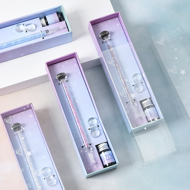 玻璃笔手工钻石猫爪系列钢笔学生用水晶蘸水钢笔礼品套装