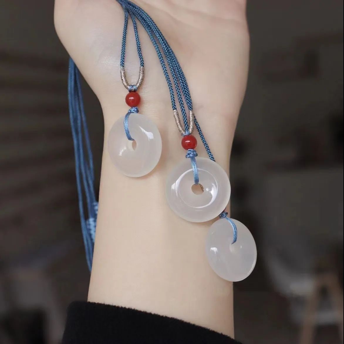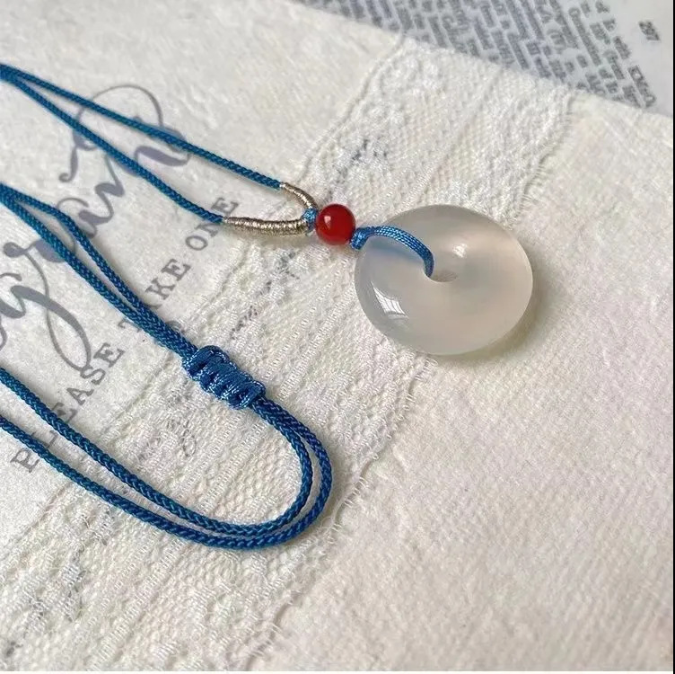 天然冰种白玉髓平安扣项链玉坠编织项链女生简约中国风新中式礼物