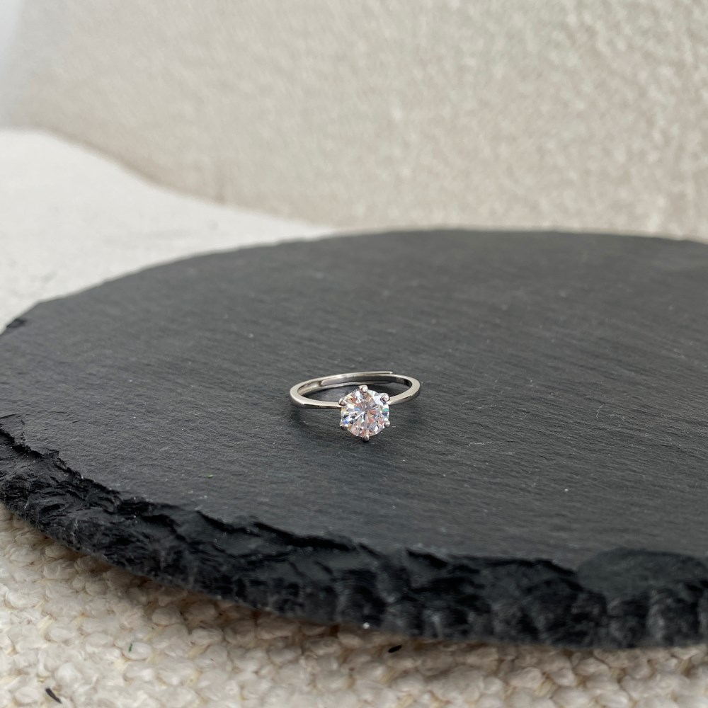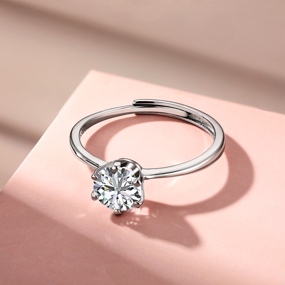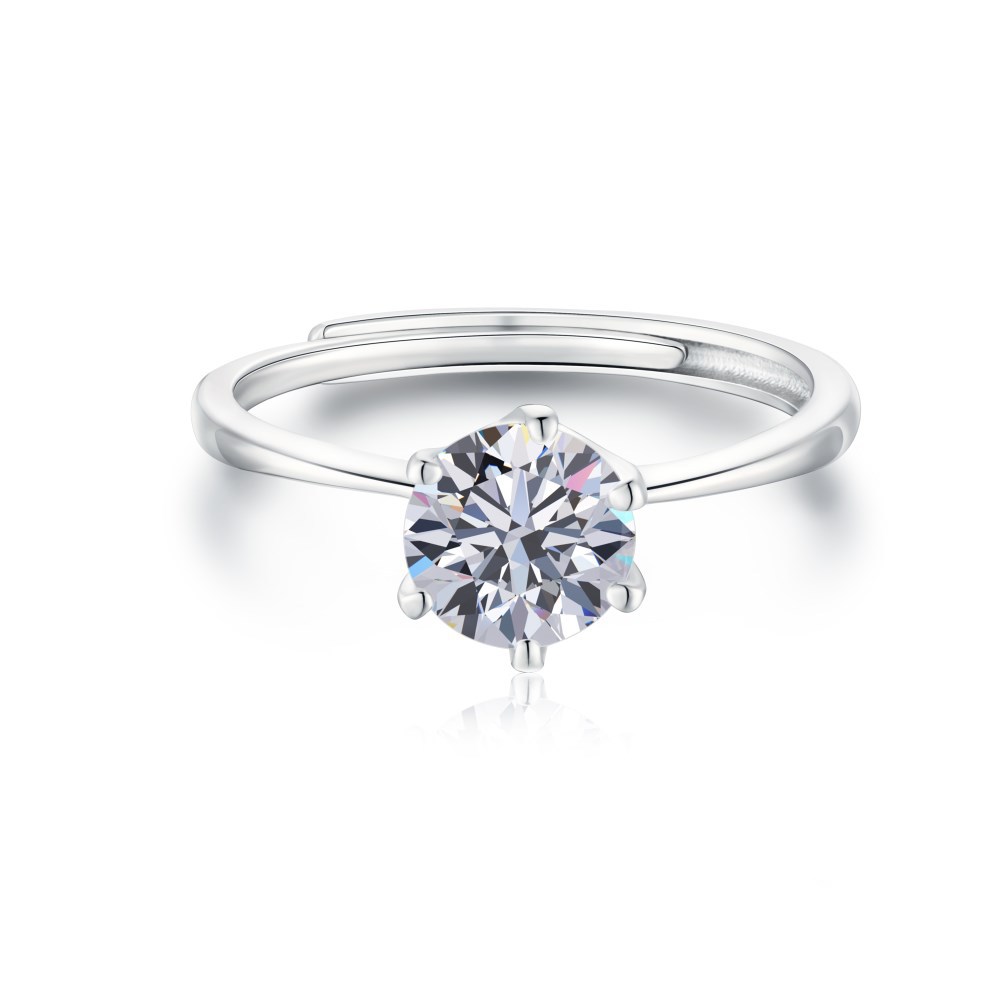 s925纯银戒指时尚经典六爪戒指一克拉锆石婚戒活口戒指可调节指环
