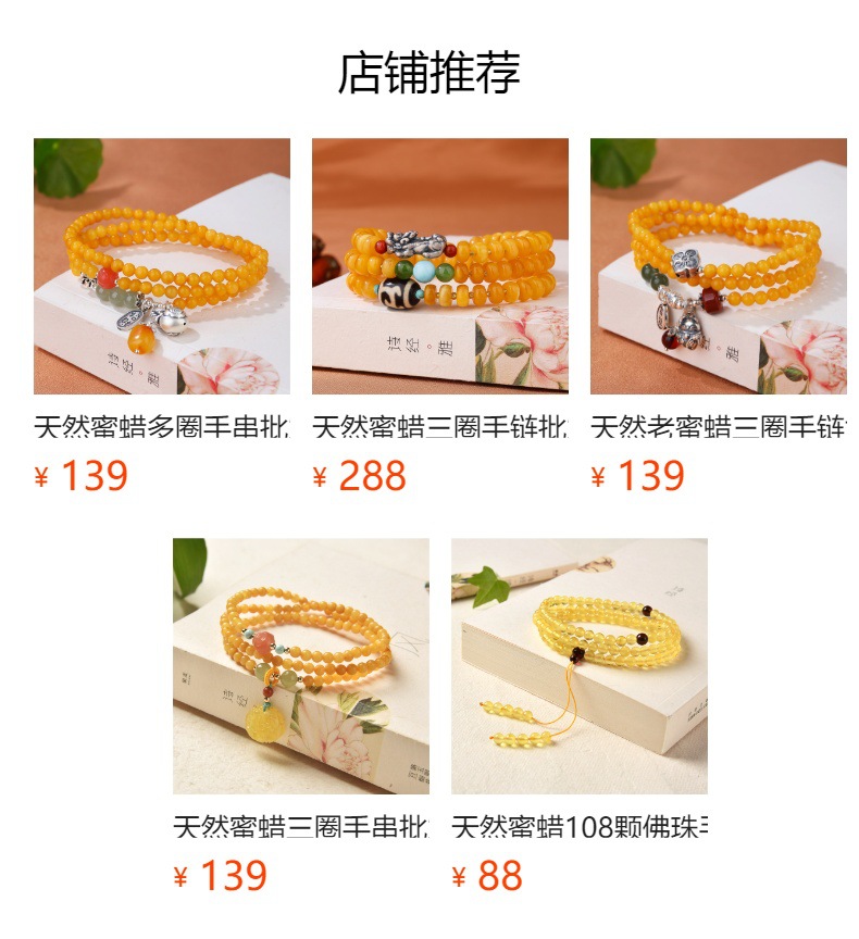天然老蜜蜡三圈手链女s925银配饰多圈手串吉祥猫复古银配饰