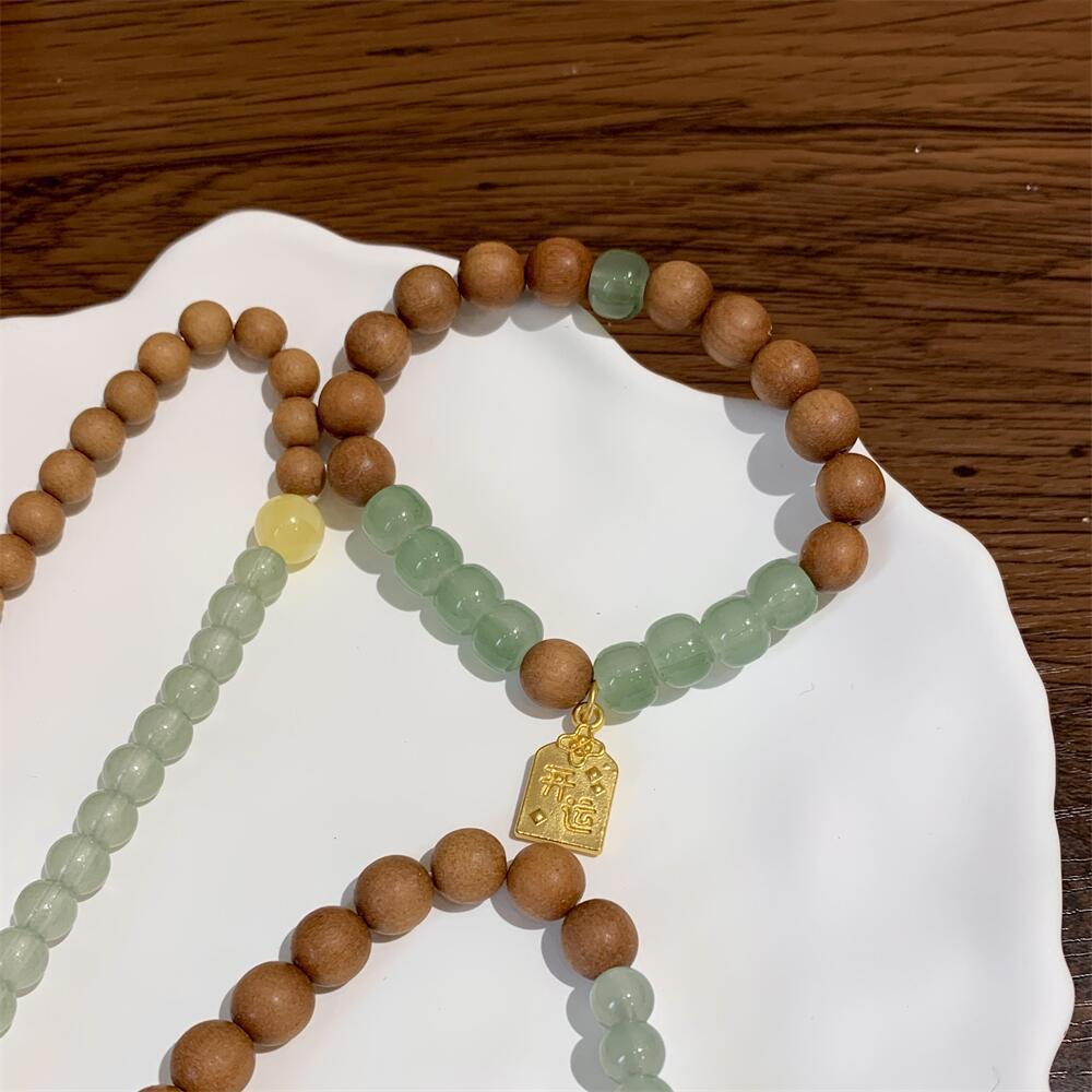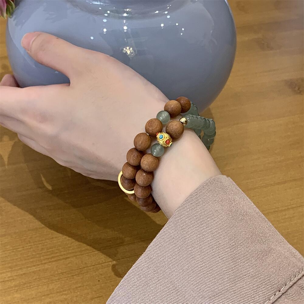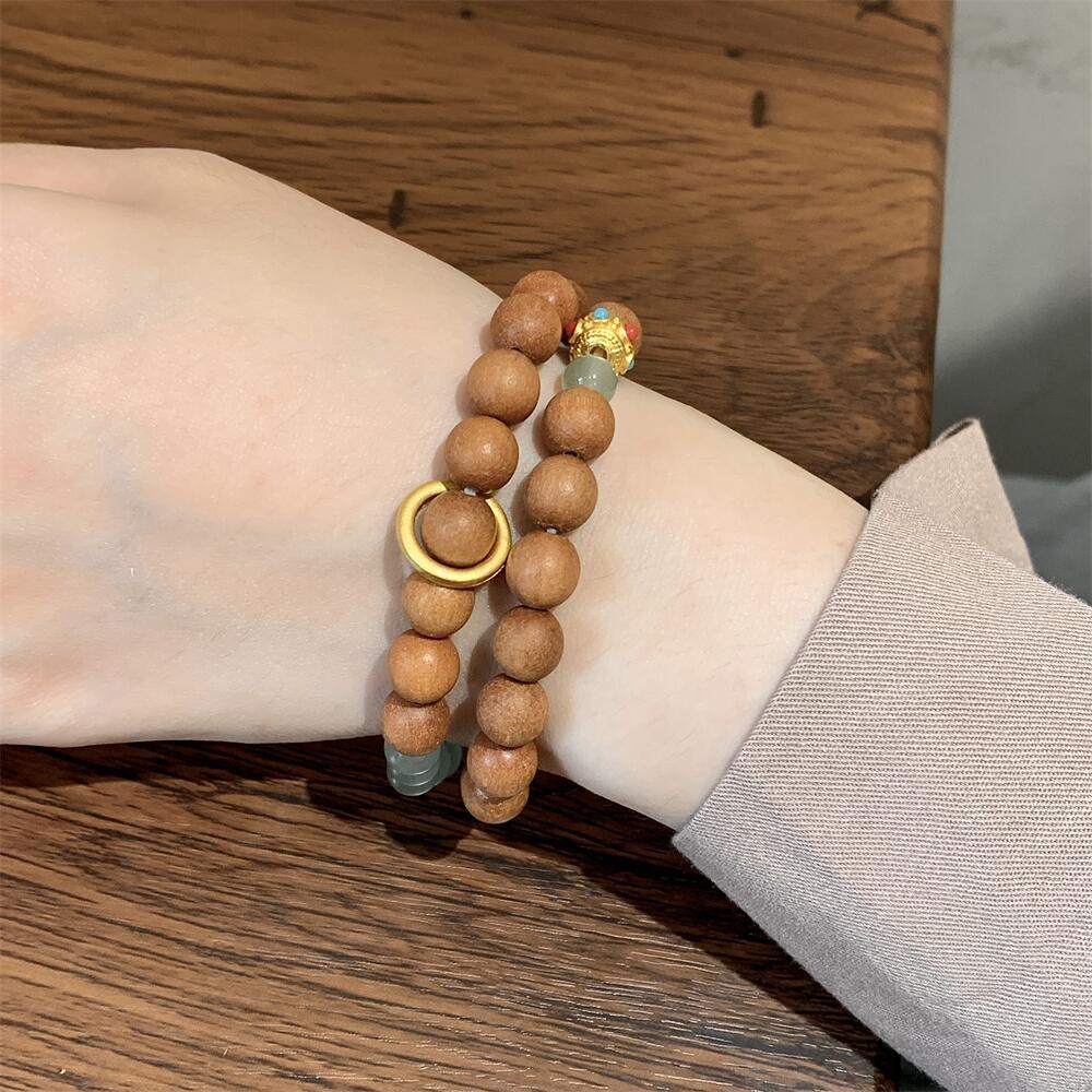 檀木蜜蜡文玩串珠手串新中式国风古物手环设计感天然石手链女