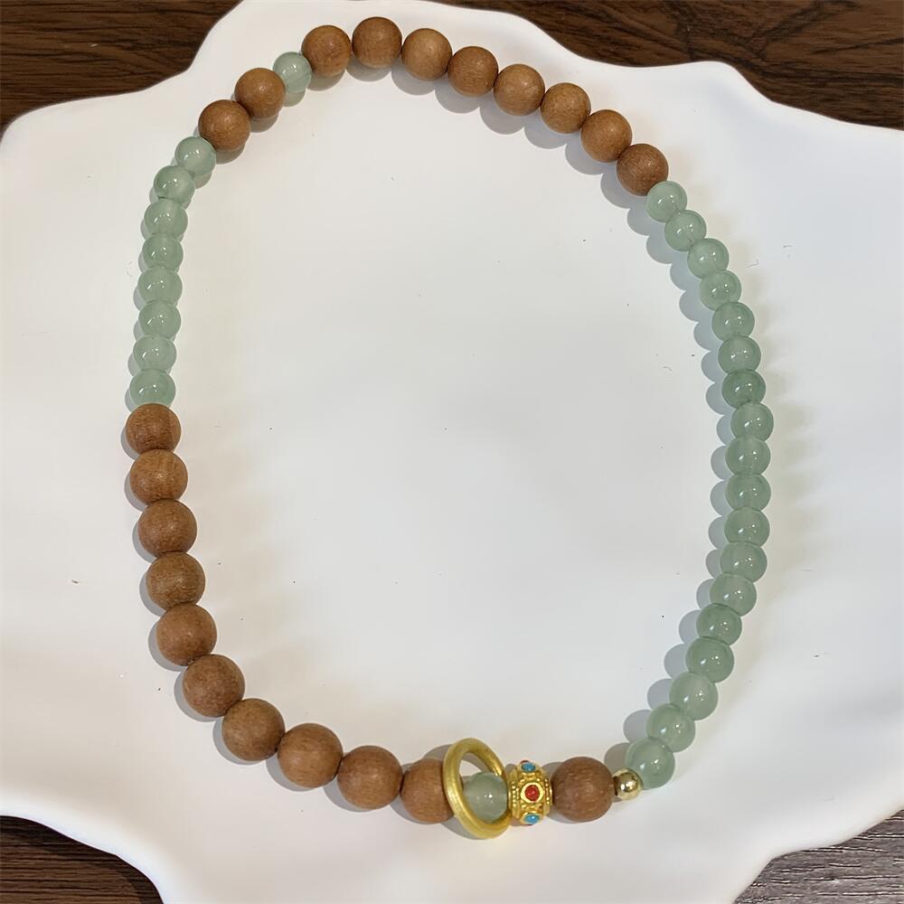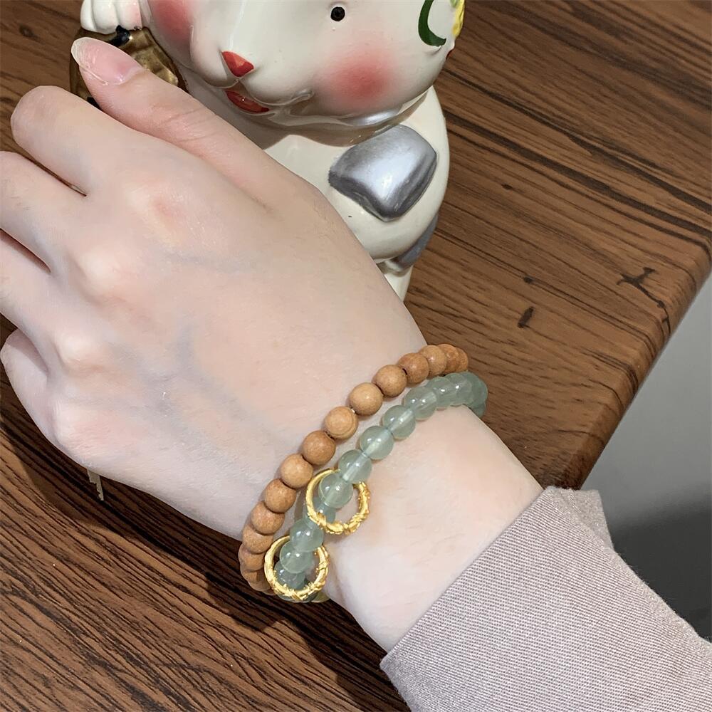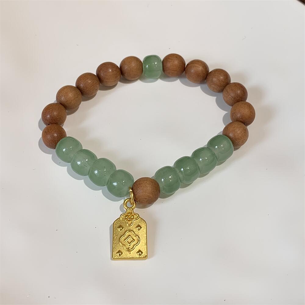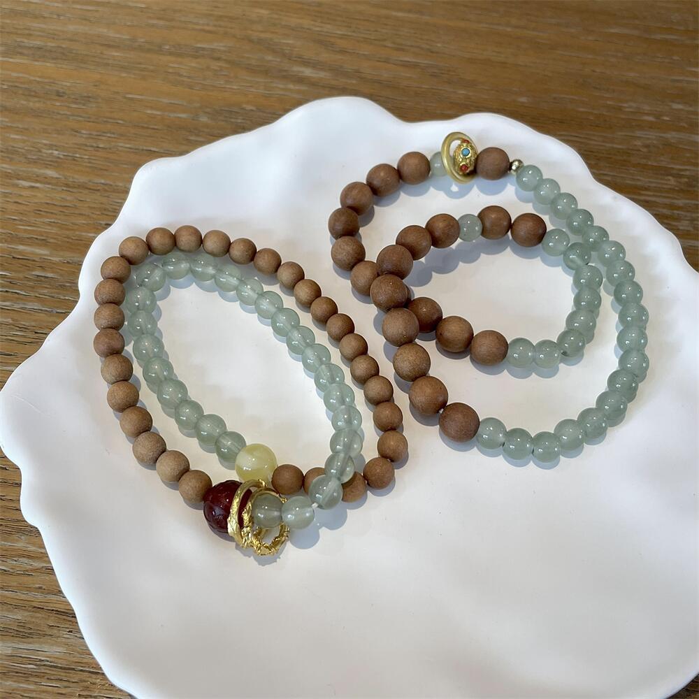 檀木蜜蜡文玩串珠手串新中式国风古物手环设计感天然石手链女