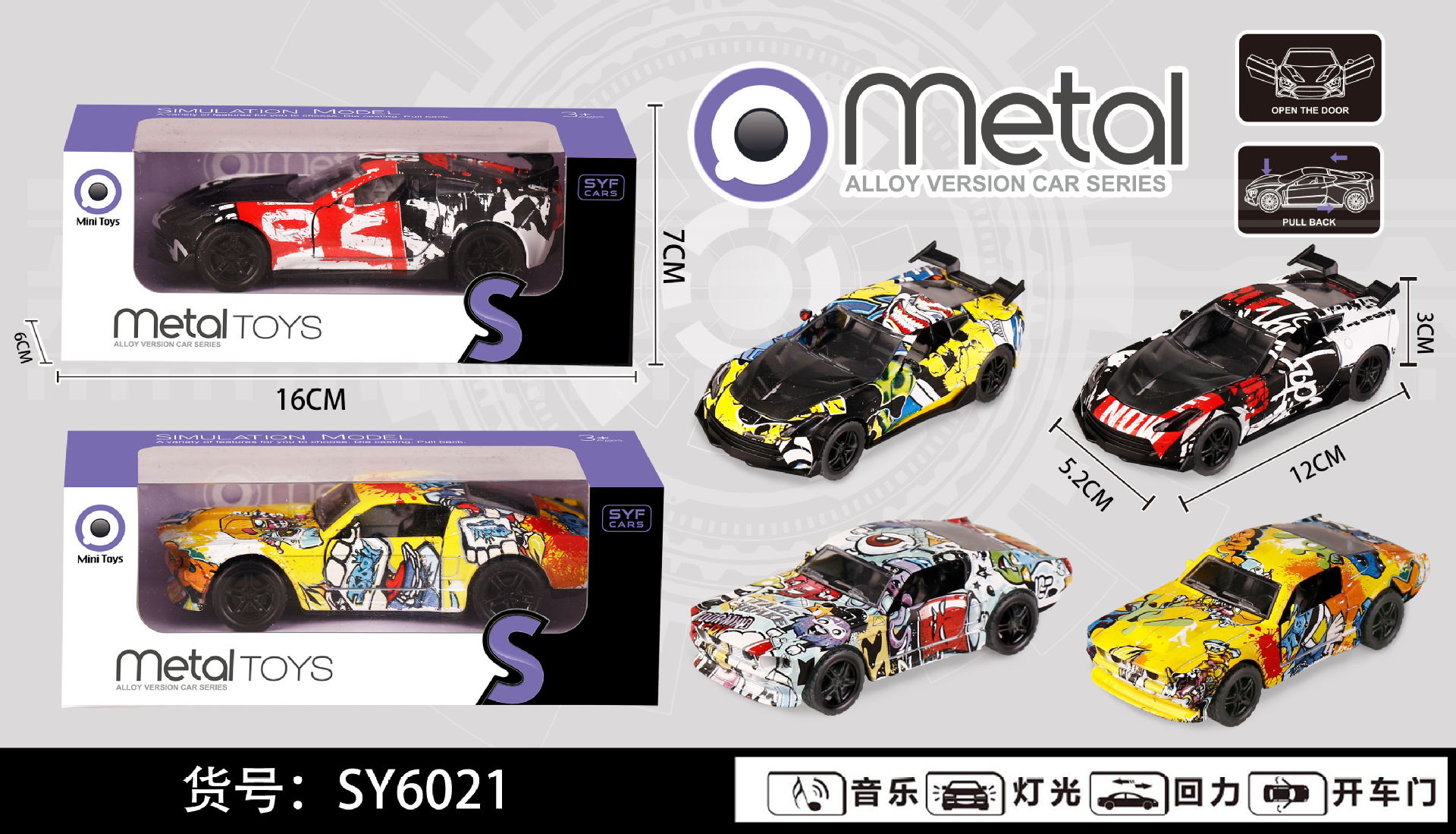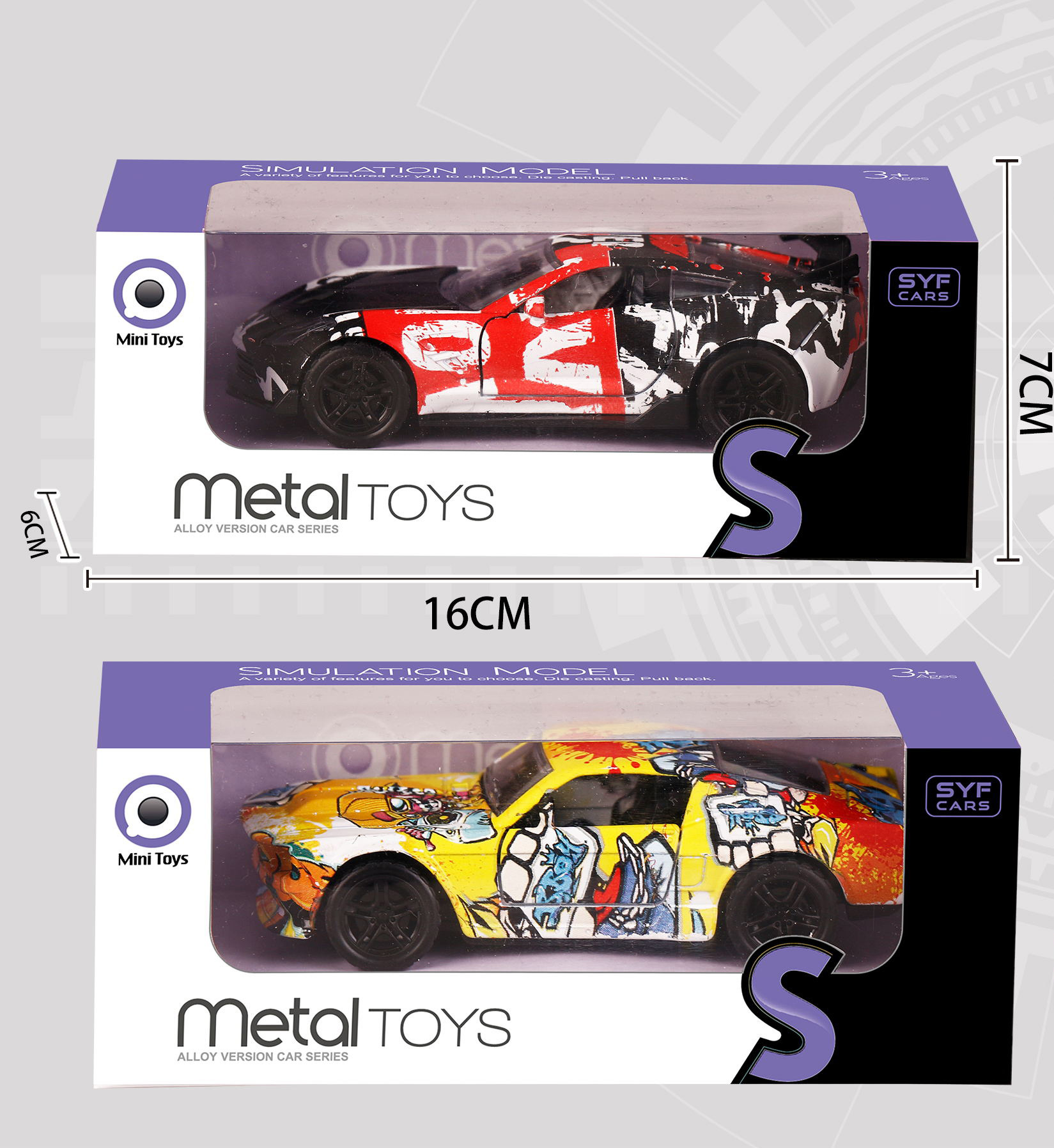 男孩仿真1:32合金涂鸦款车模型合金玩具回力玩具车收藏版限量款