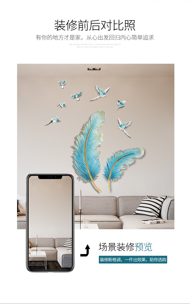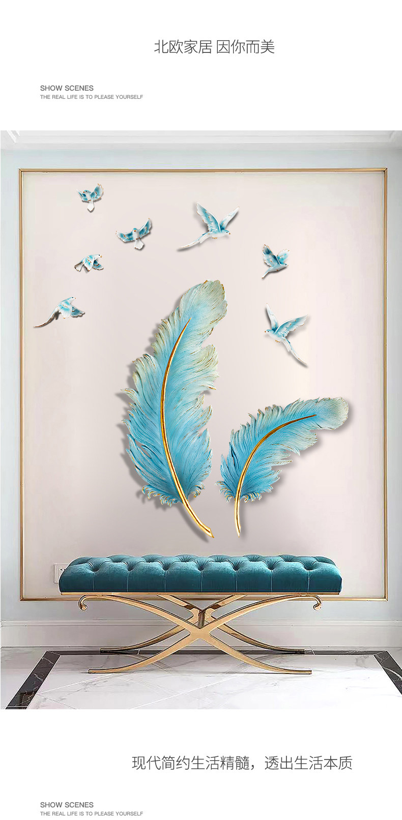羽毛沙发背景墙面挂饰挂件玄关壁饰墙上装饰品现代墙饰