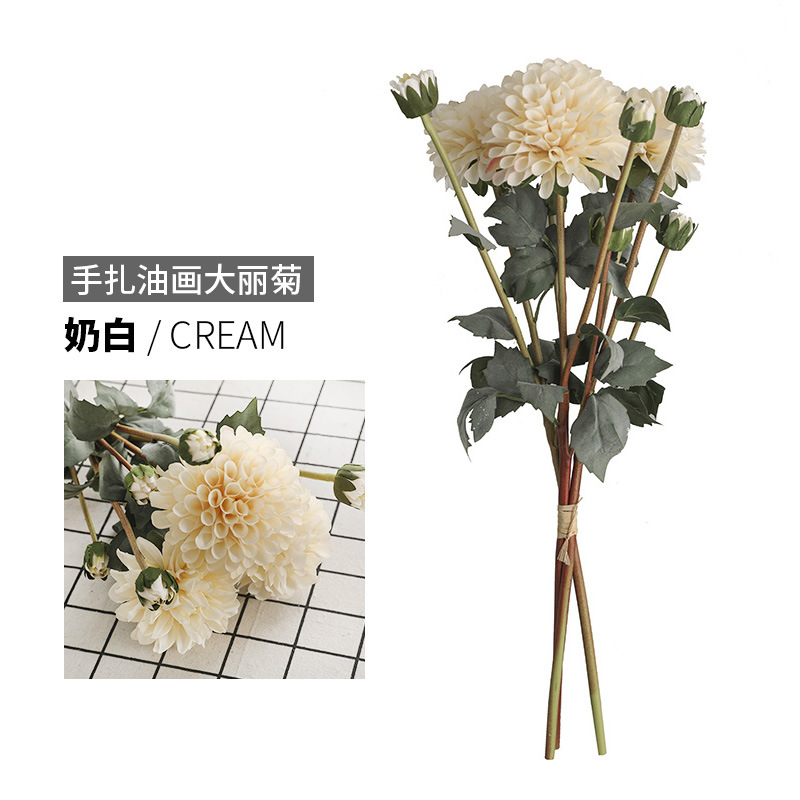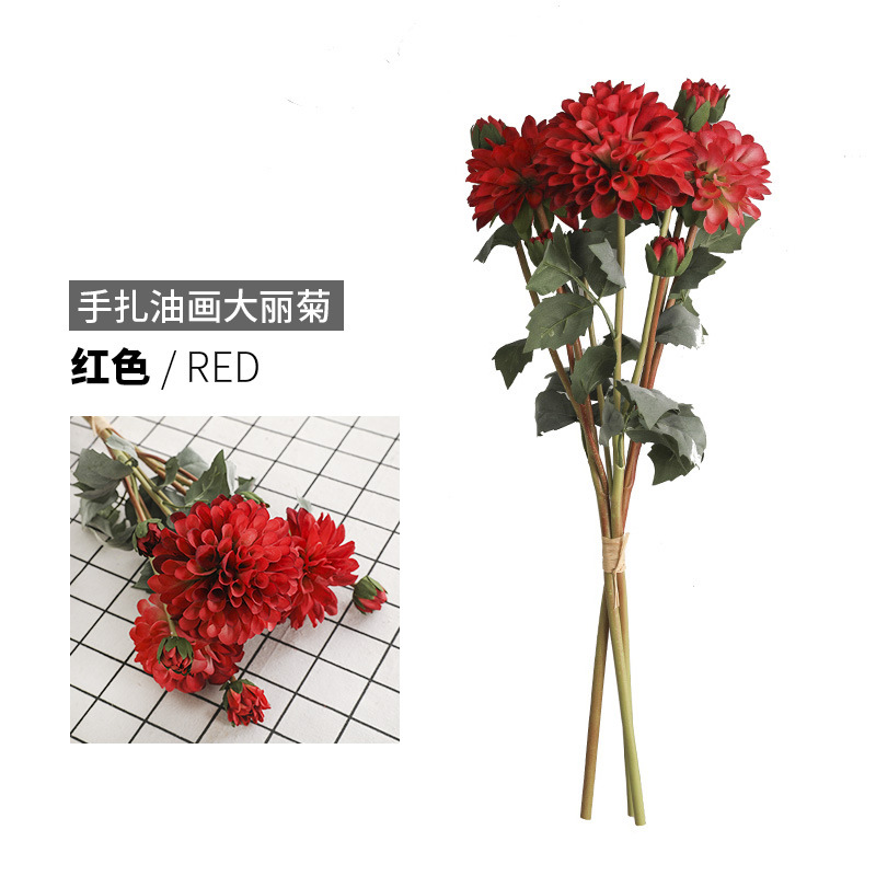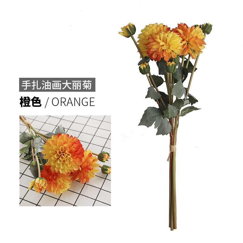 影楼拍摄道具仿真复古假花 样板房陈设仿真手扎油画大丽菊花束