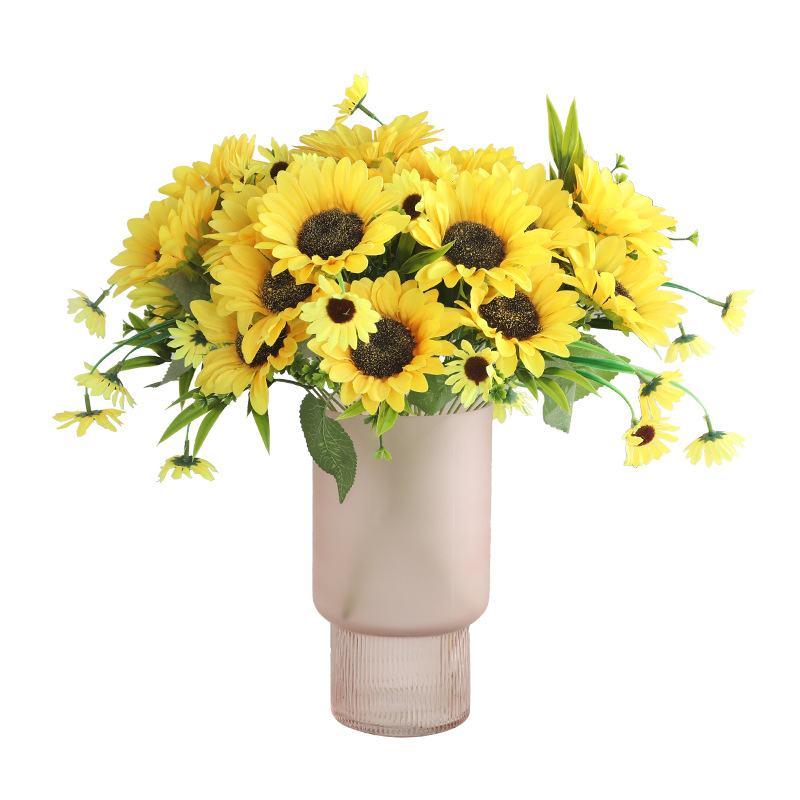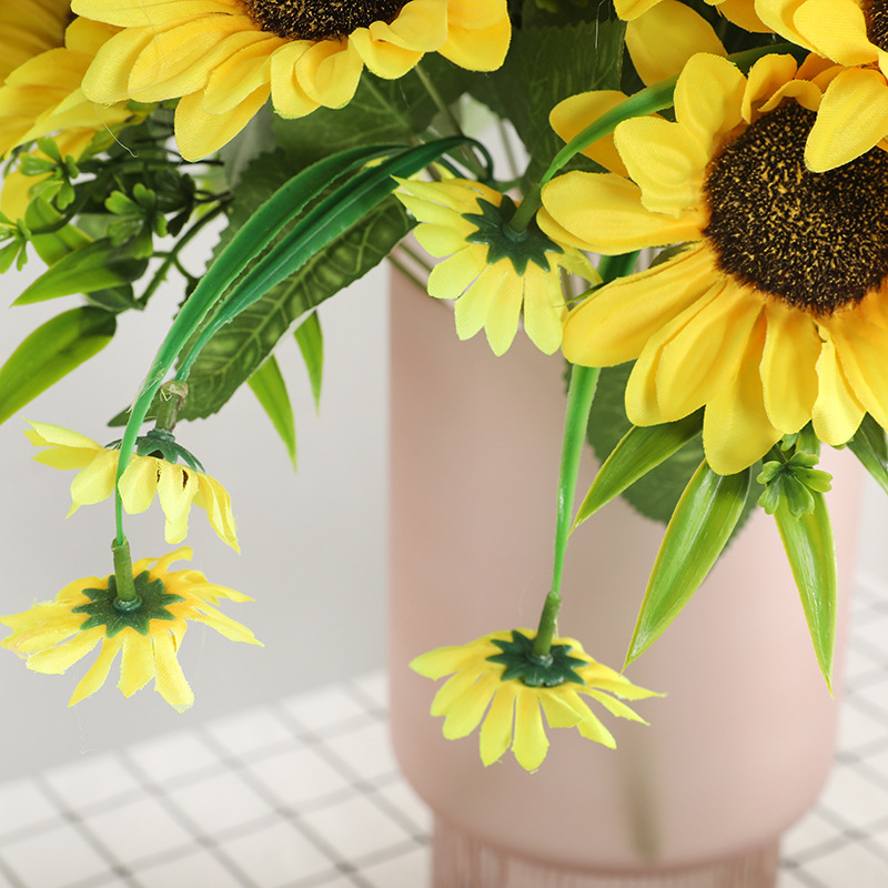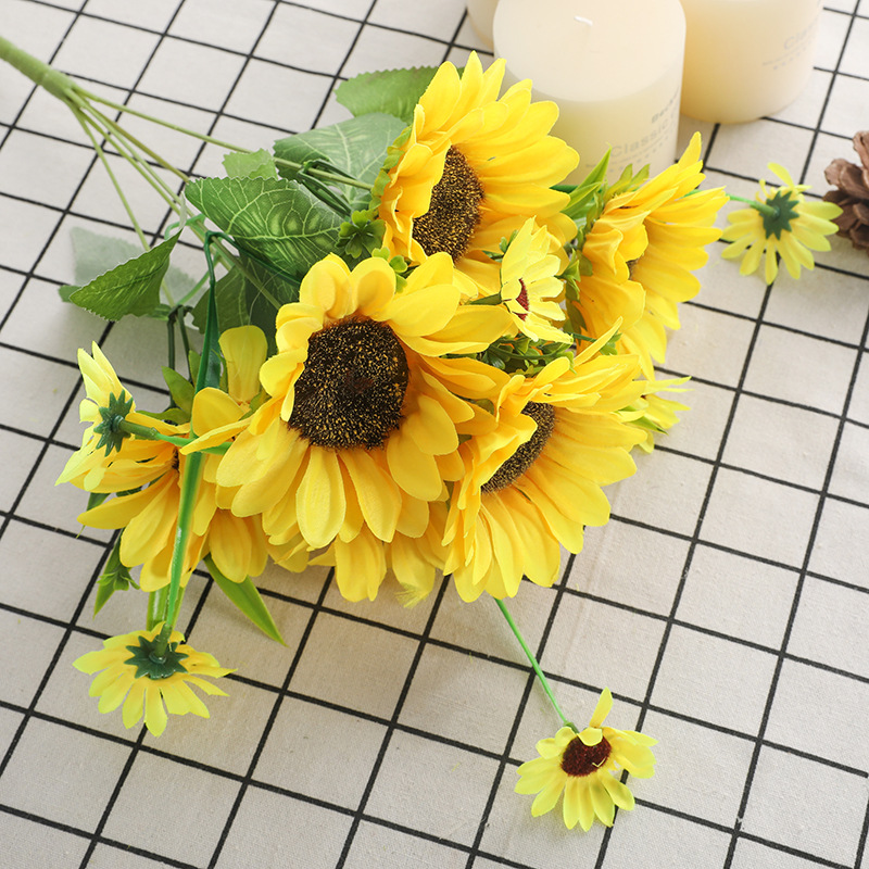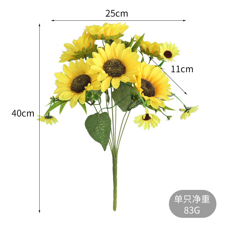 速卖通货运商场橱窗装饰仿真太阳花束 新娘手捧仿真7头韩式向日葵