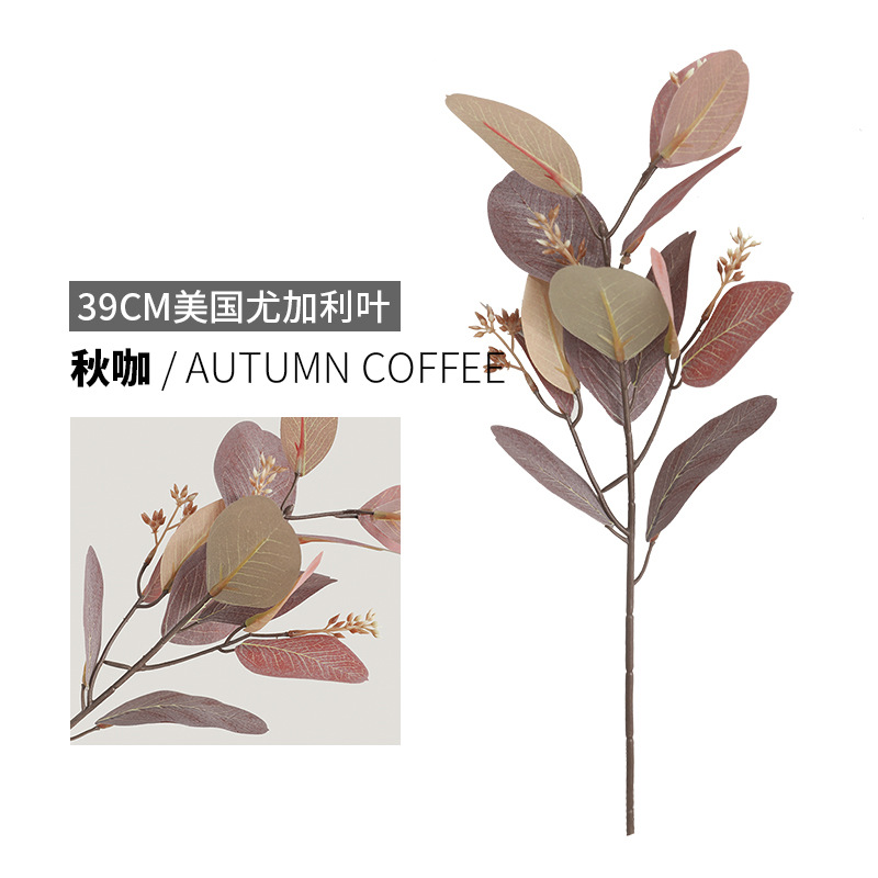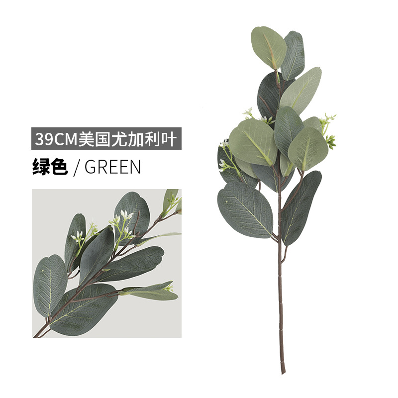北欧家居装饰仿真假花绿植叶子 新娘手捧花仿真39cm美国尤加利叶