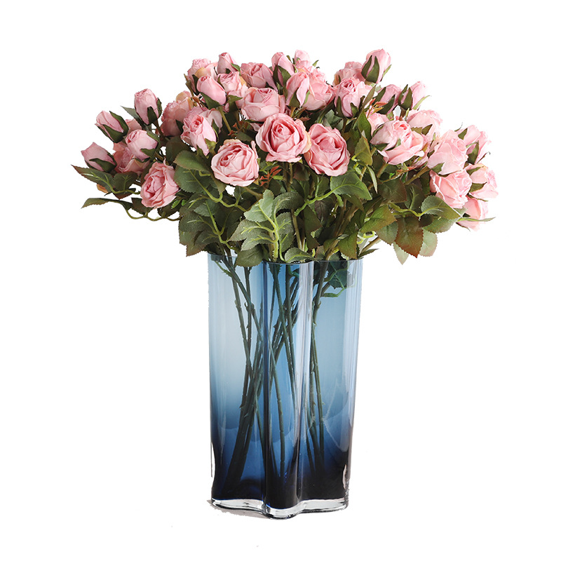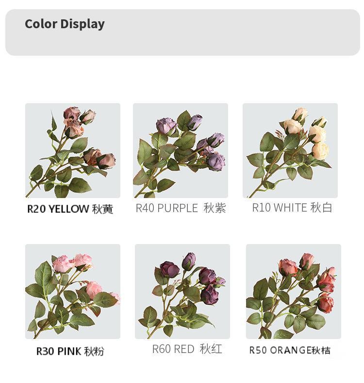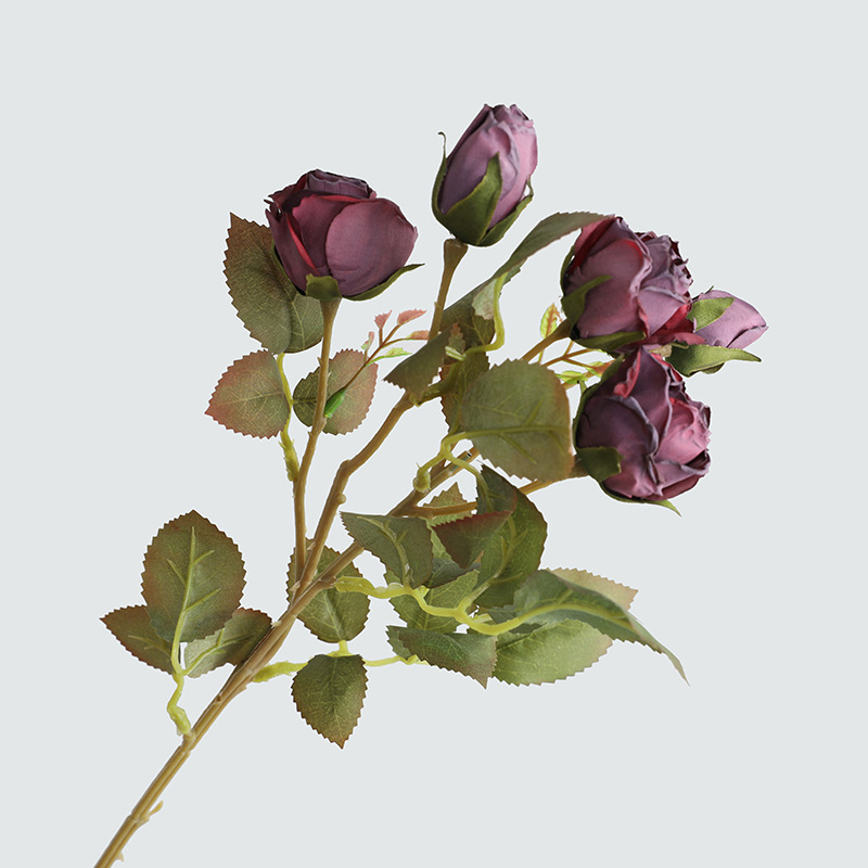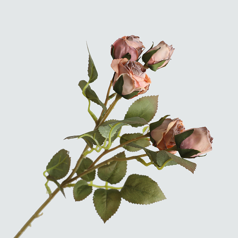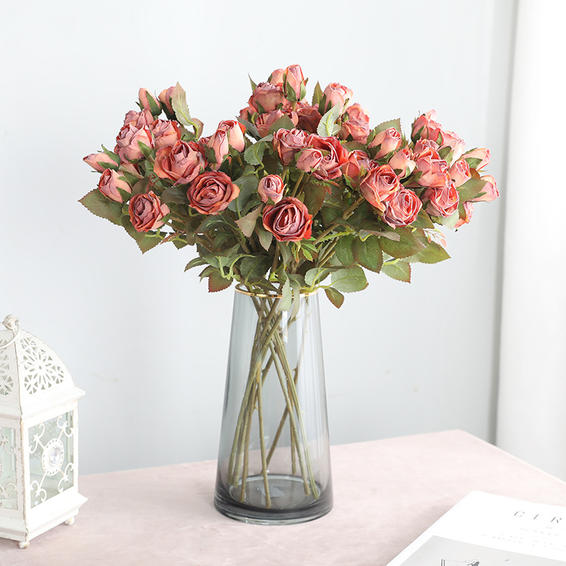 亚马逊直供餐厅玄关摆件仿真玫瑰假花 婚庆仿真花复古5头小玫瑰