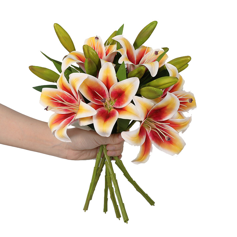中式家居装饰仿真假花百合花束 客厅家居摆件仿真3D打印迷你百合