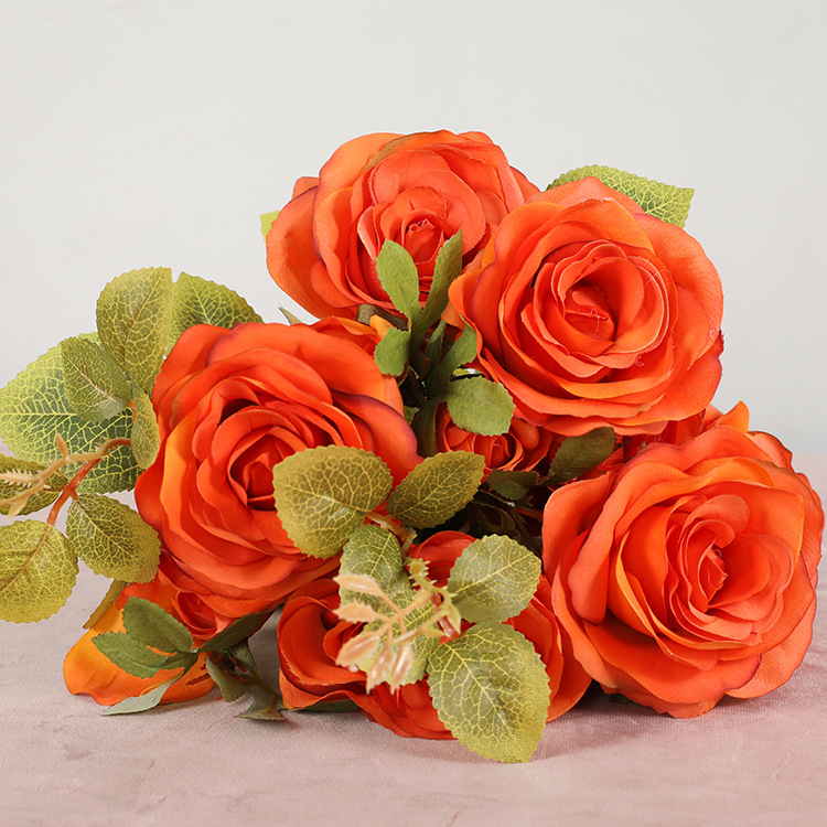 厂家直销家居装饰假花仿真玫瑰花束 婚庆路引ins仿真10头巴西玫瑰