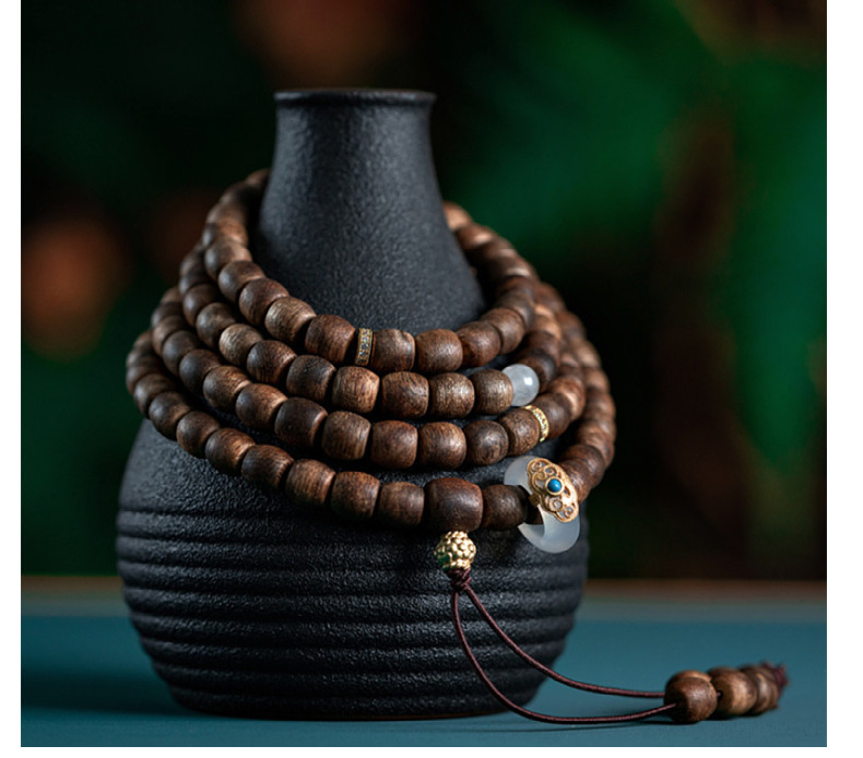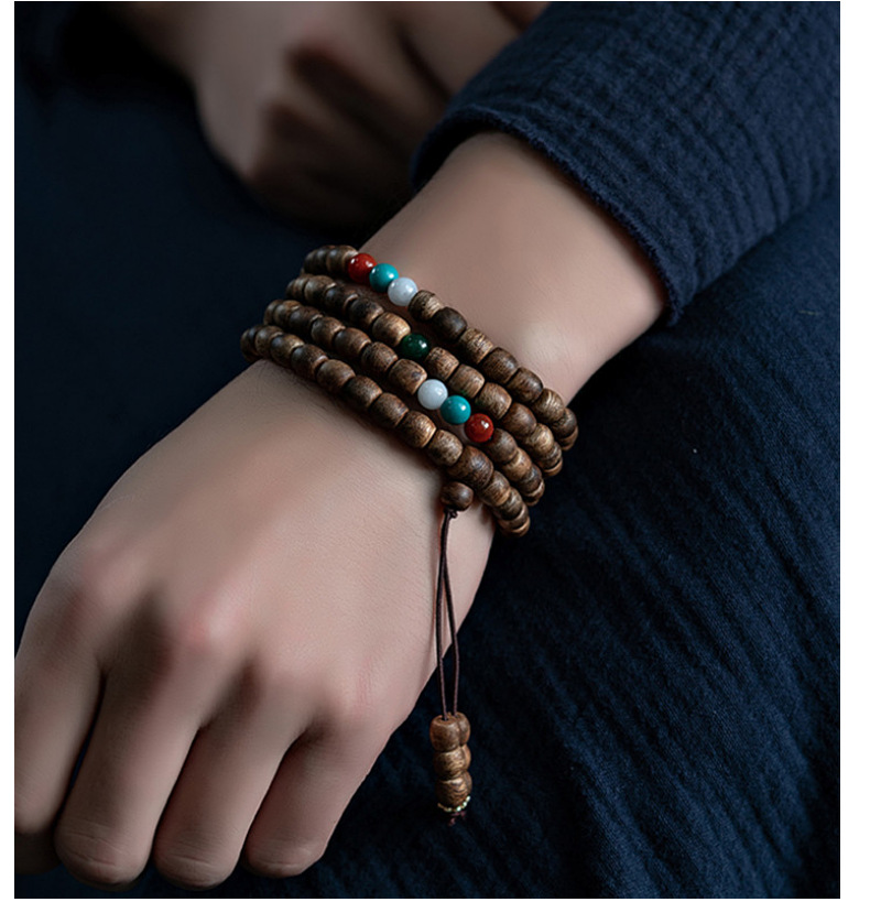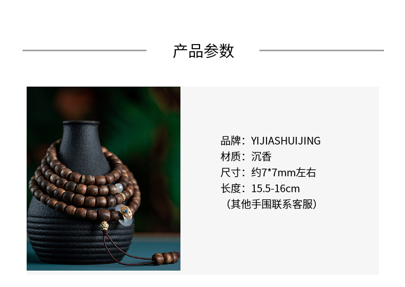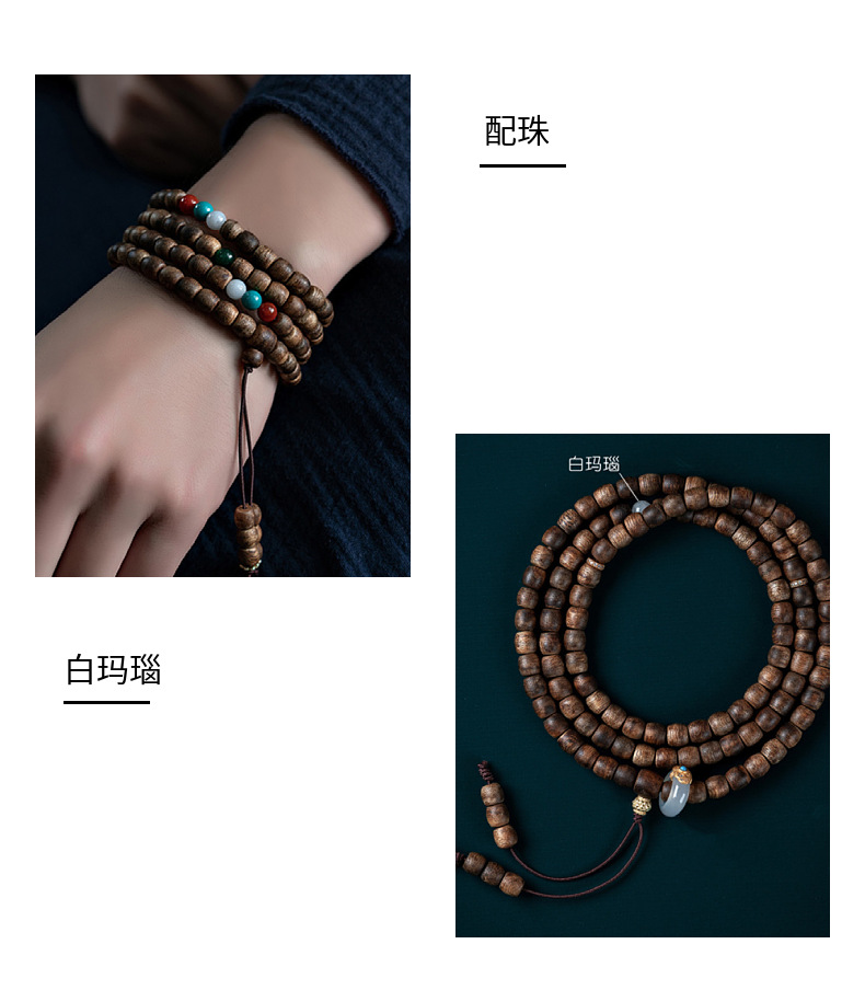 天然绿奇楠沉香7*7mm手串108颗手链桶珠木手链佛珠女男款中国风