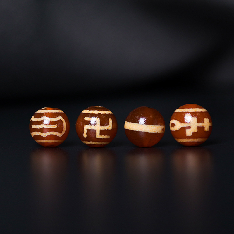 批发西藏藏式老料复古图腾天珠玛瑙桶珠勒子文玩佛珠饰品配件鼓珠