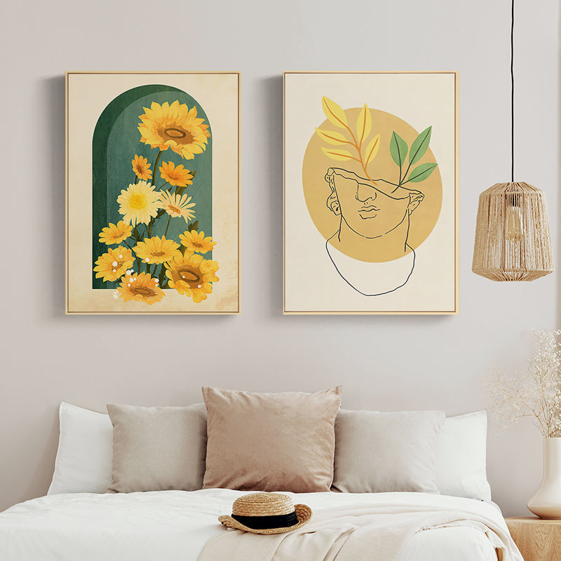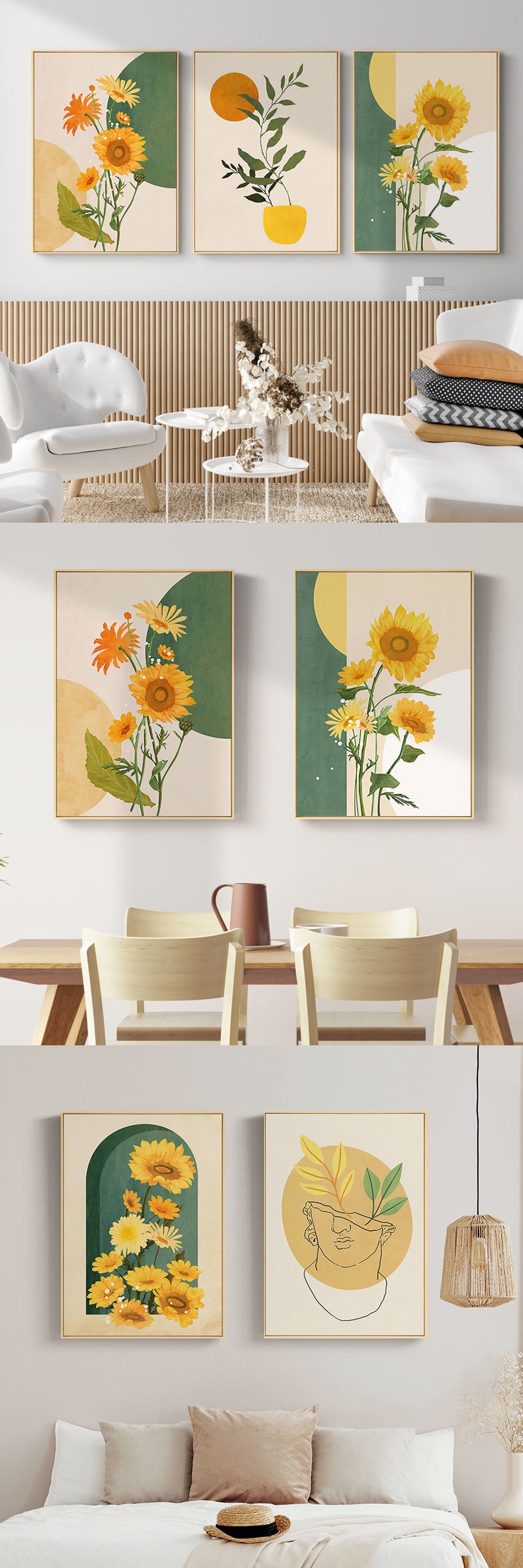 挂画装饰画向日葵风格小清新餐厅轻奢客栈民宿卧室床头壁画花跨境