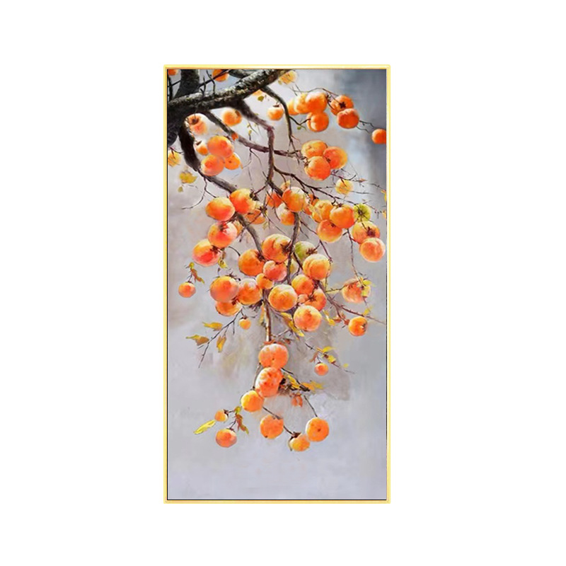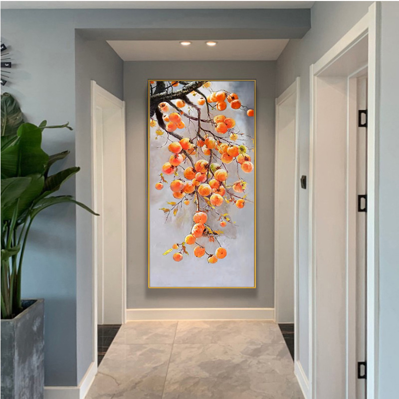 走廊尽头装饰画过道柿子挂画竖版手绘油画新中式现代简约大气