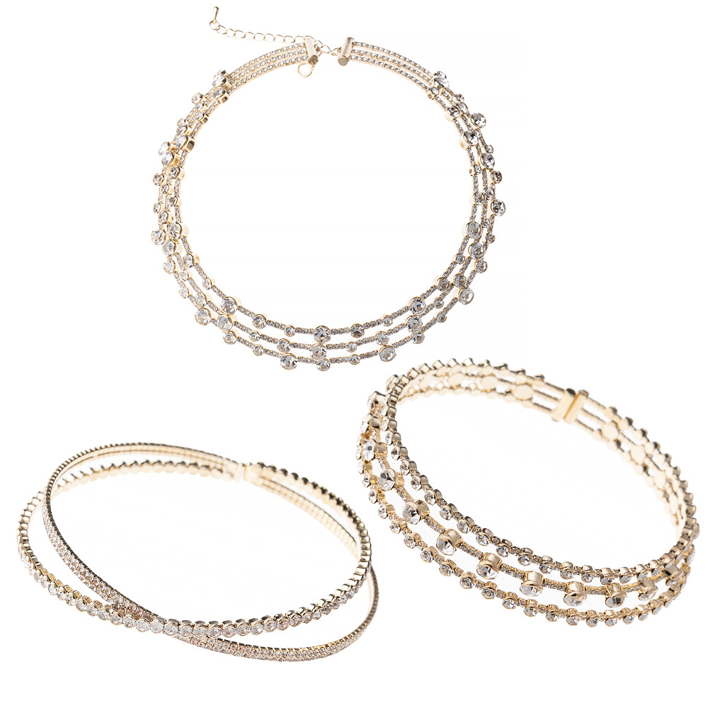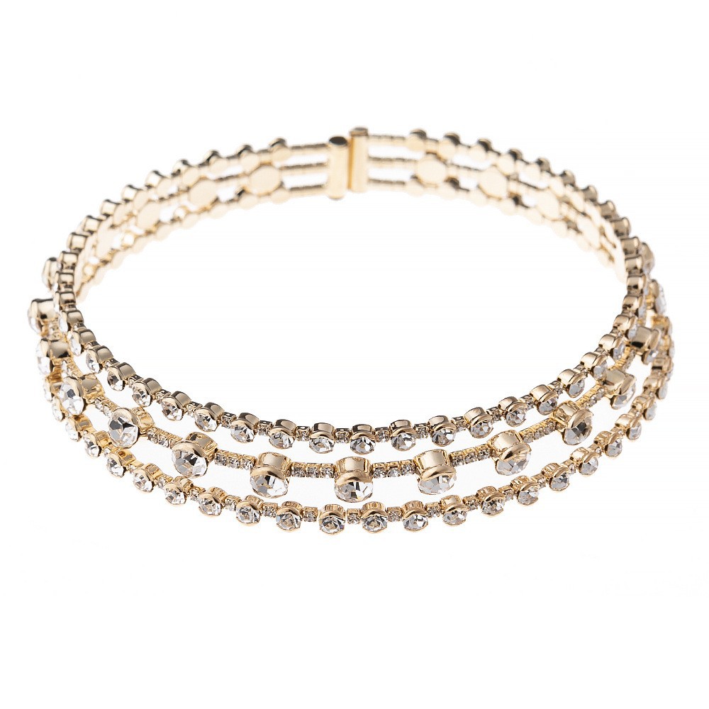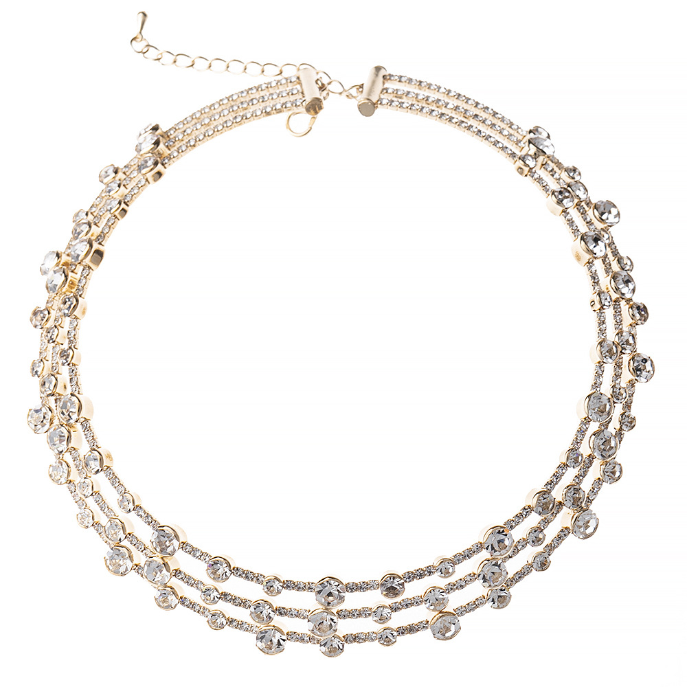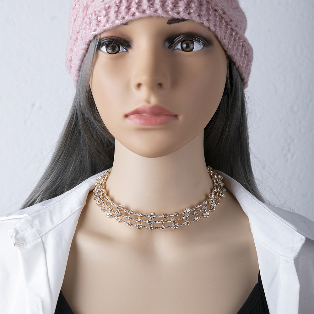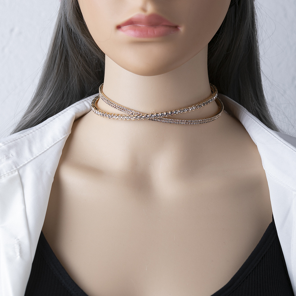 外贸新设计畅销设计感水钻颈链镀金choker项链圆形项圈欧美