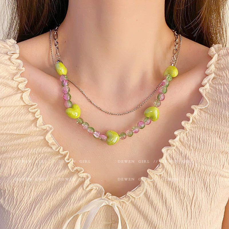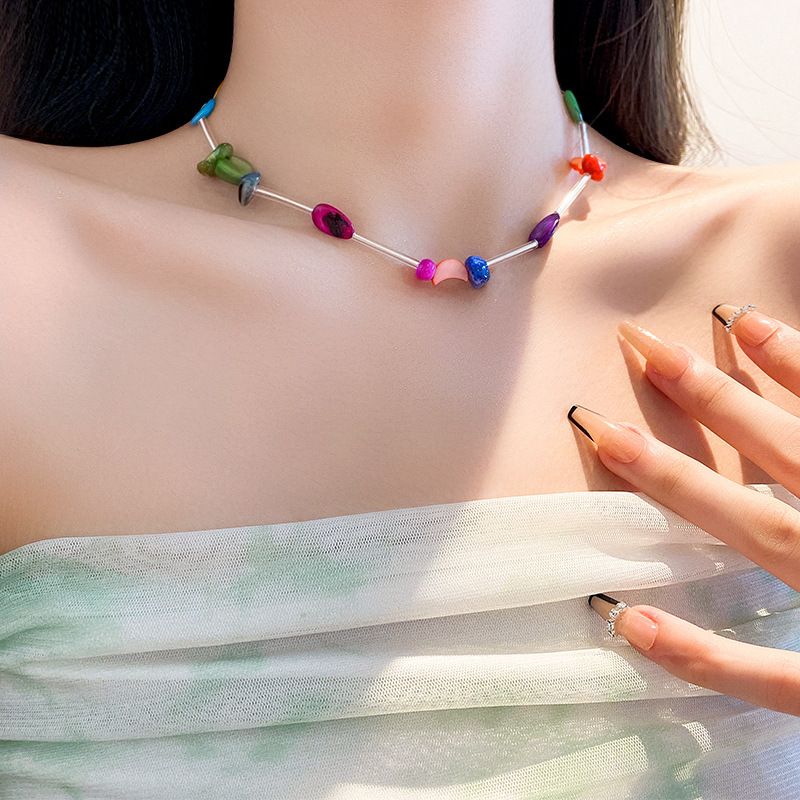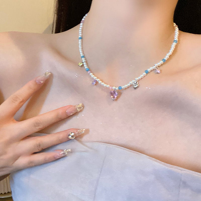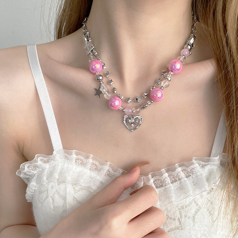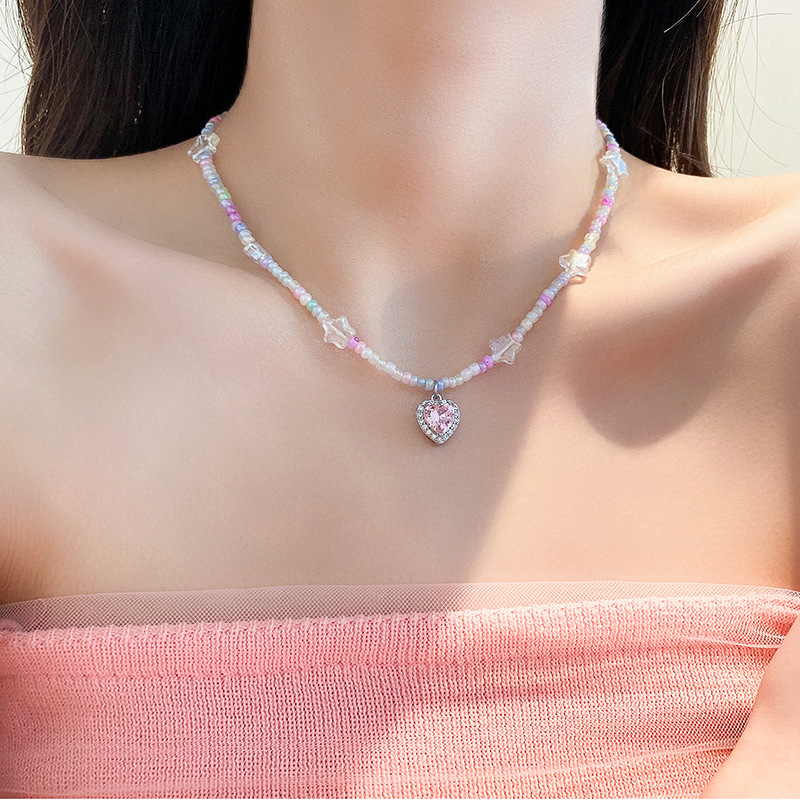 多巴胺彩色串珠蝴蝶星星蝴蝶结爱心流苏项链甜美锁骨链少女心项饰