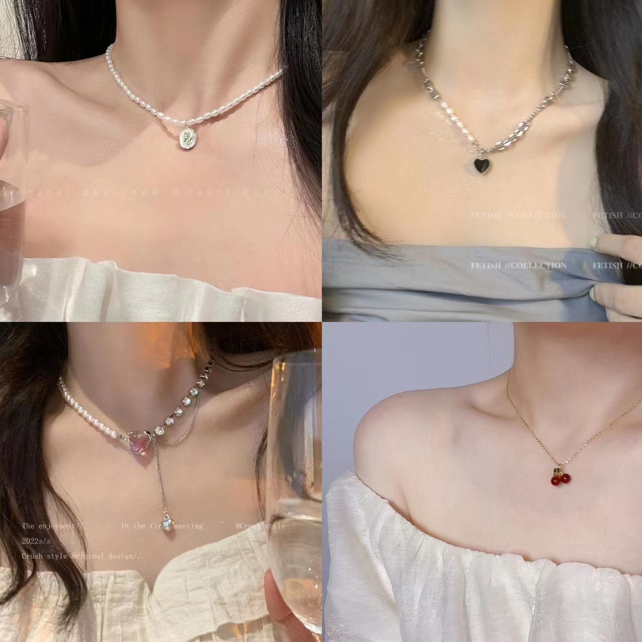 韩版饰品项链仙女气质百搭简约颈链小众蝴蝶结爱心珍珠锁骨链批发