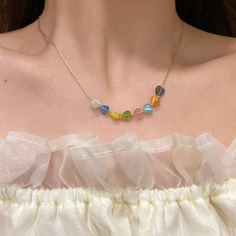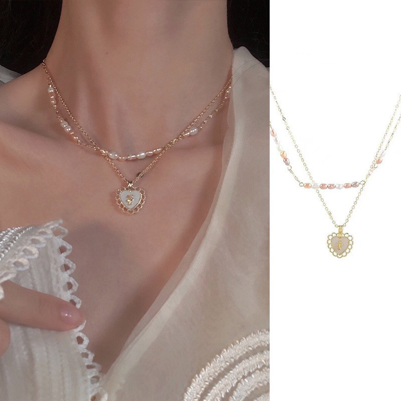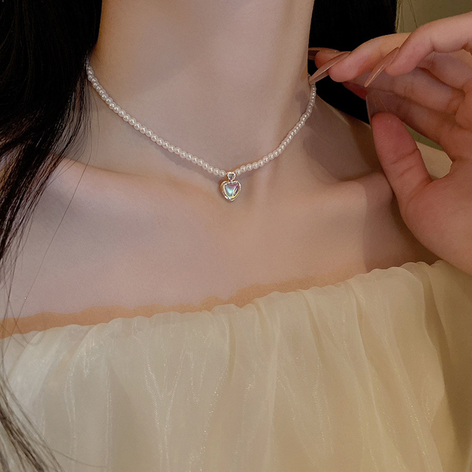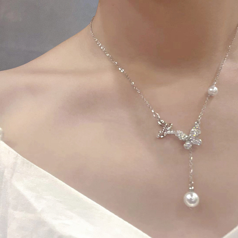 新款钛钢小众珍珠项链女百搭拼接爱心蝴蝶锁骨链轻奢气质颈链批发