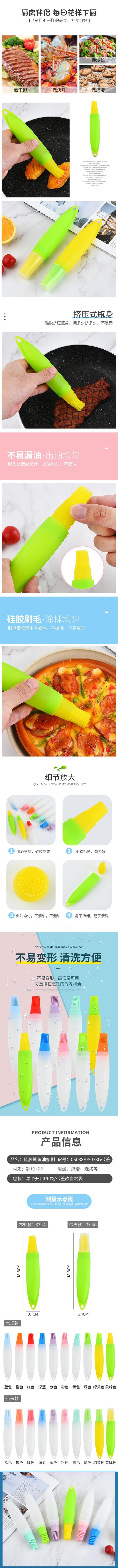 硅胶油瓶刷耐高温硅胶油刷 带盖子刷油瓶硅胶油壶刷 烧烤刷油瓶
