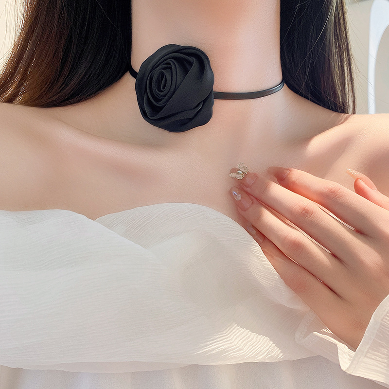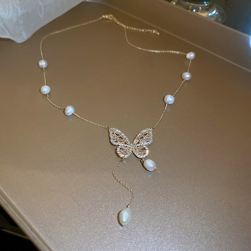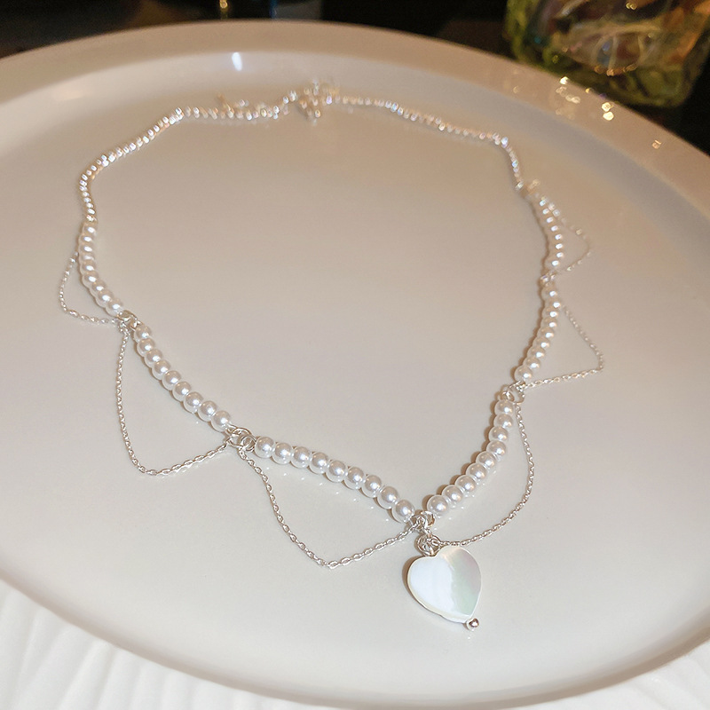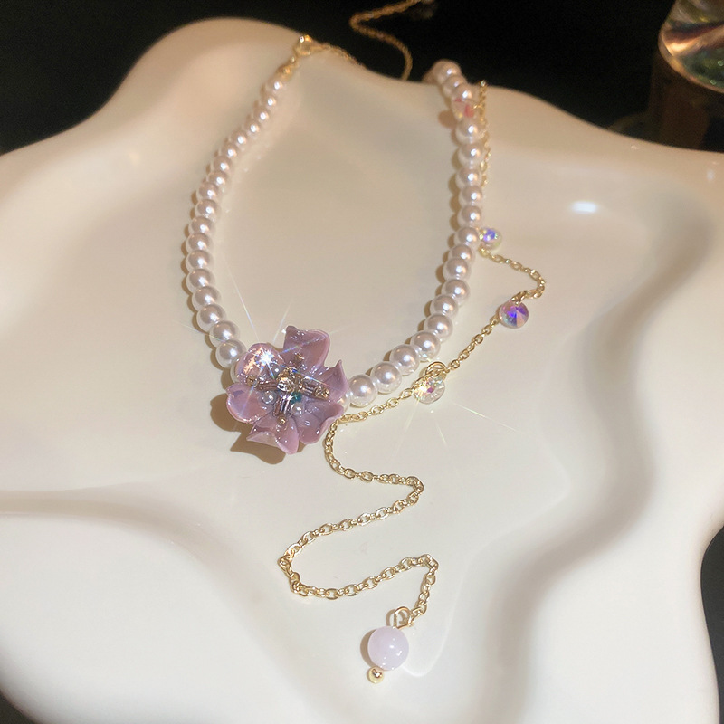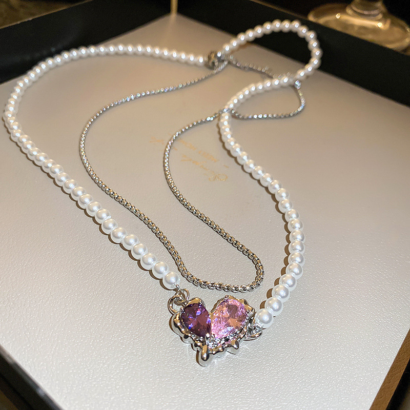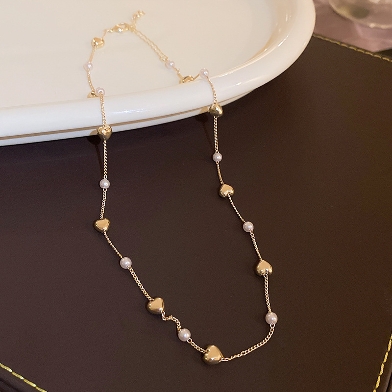 法式复古镶钻珍珠花朵爱心猫眼石项链时尚轻奢锁骨链高级感项饰女
