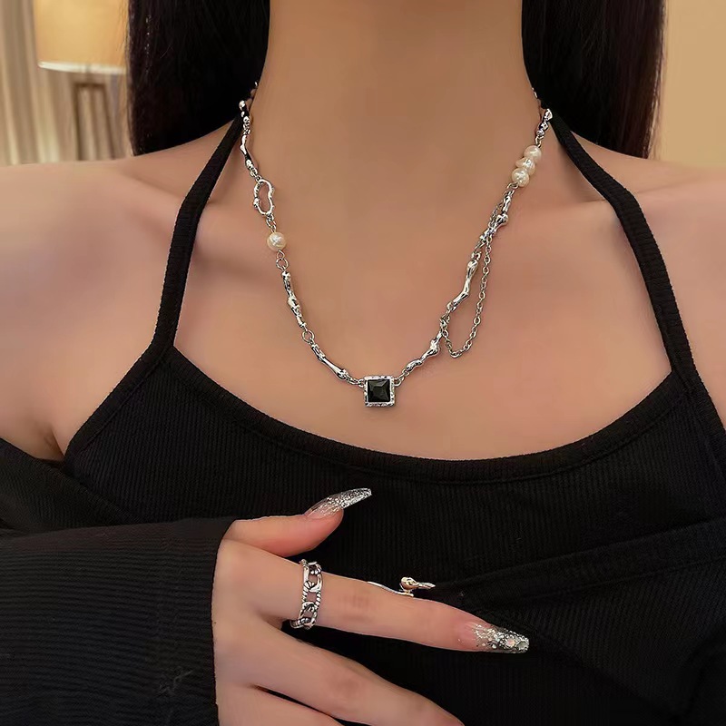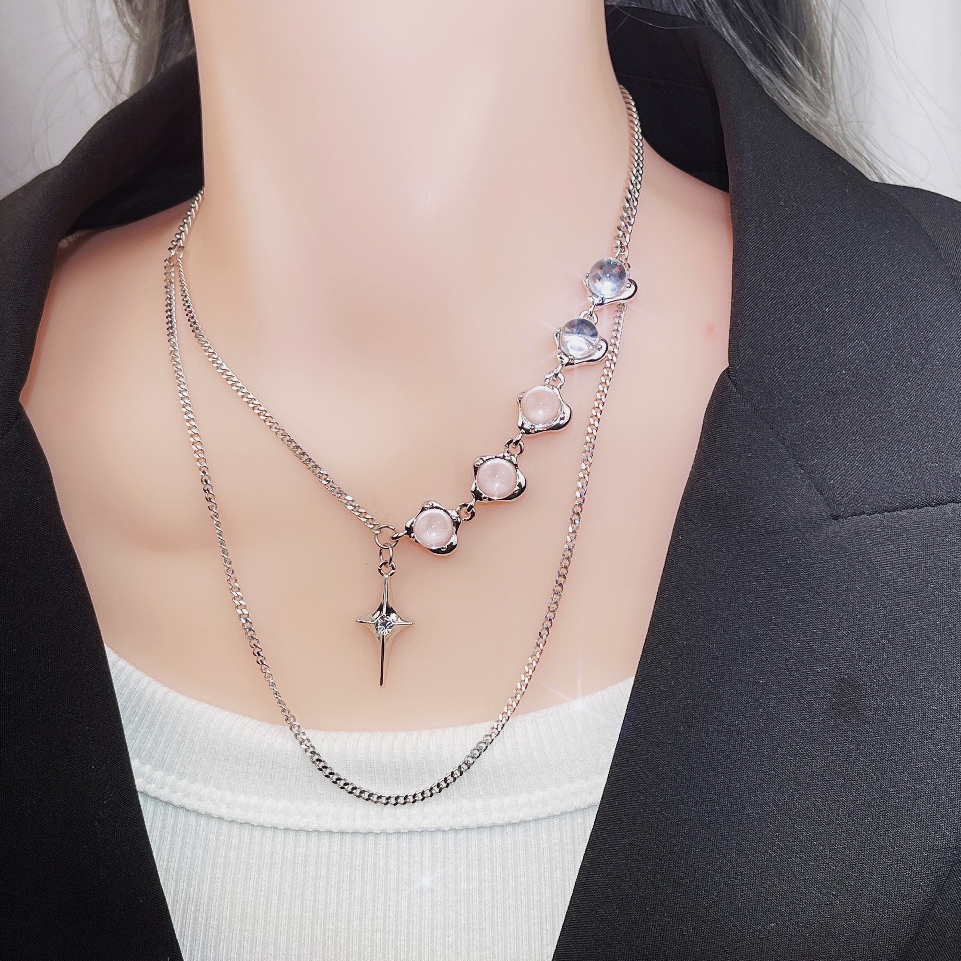 白月光石锆石项链女高级感不掉色夏季甜酷辣妹网红配饰品锁骨链潮