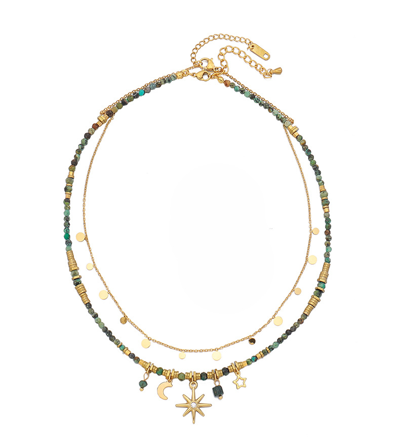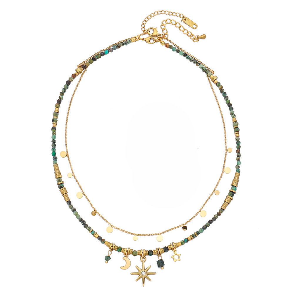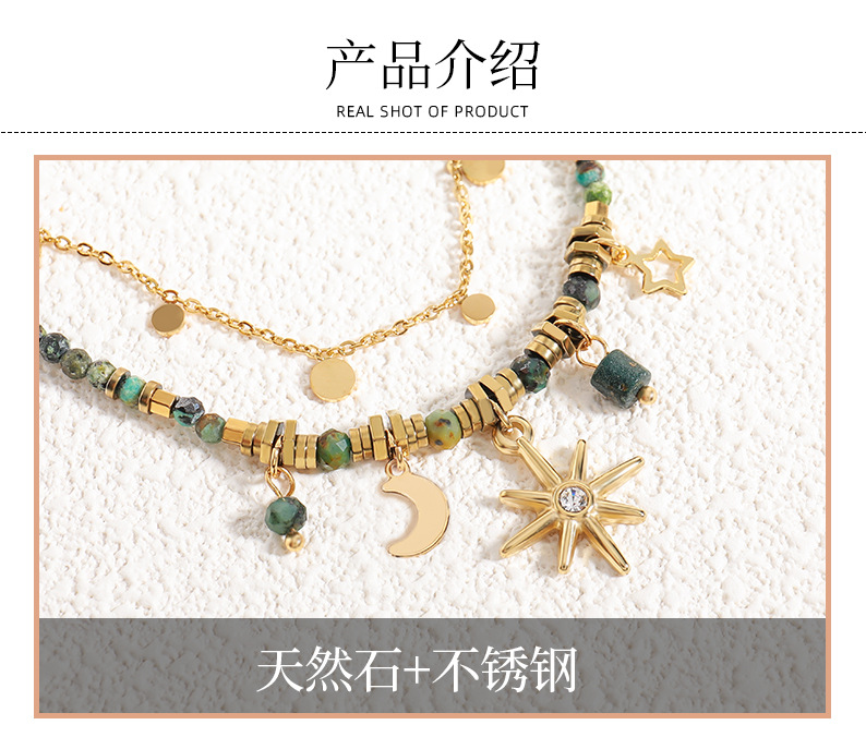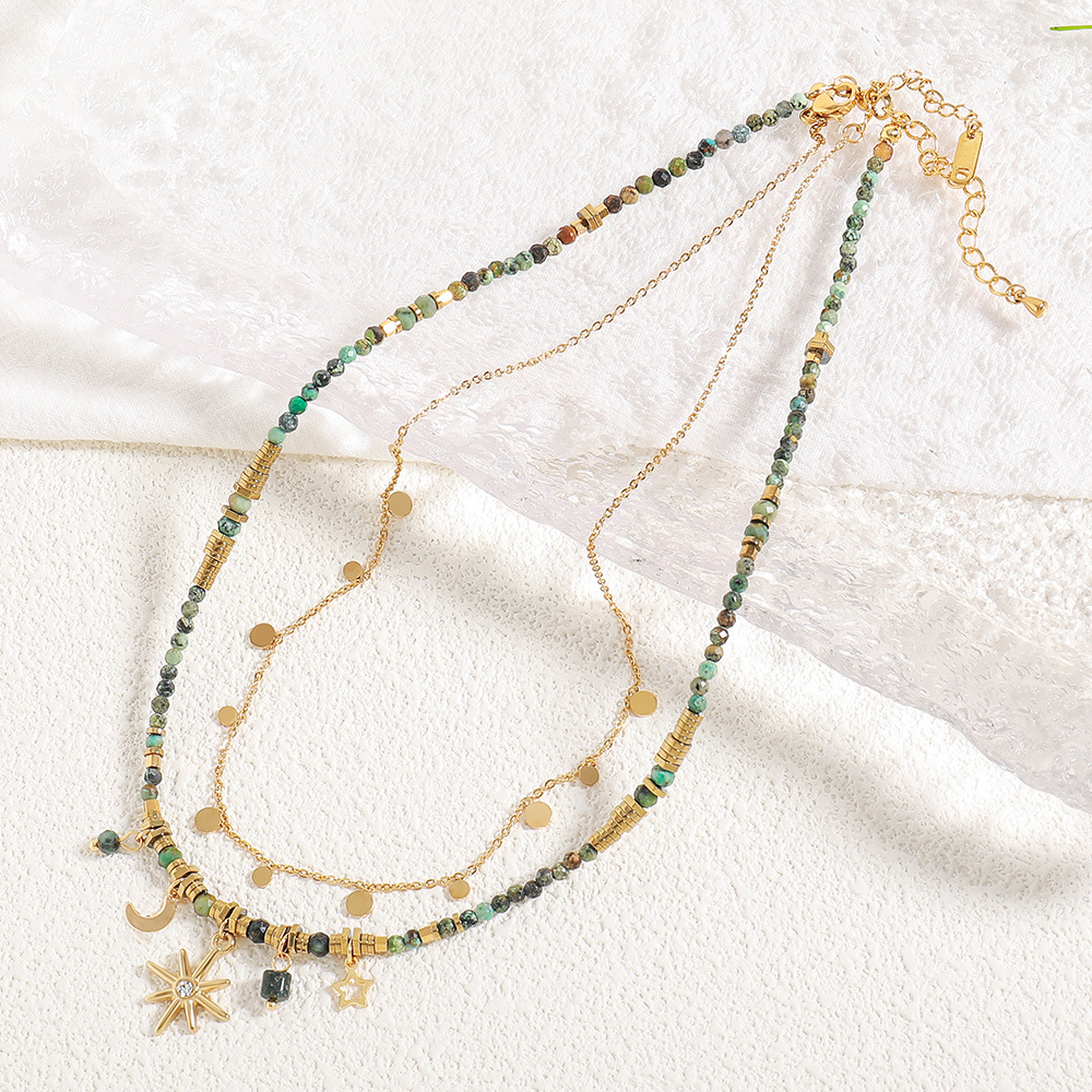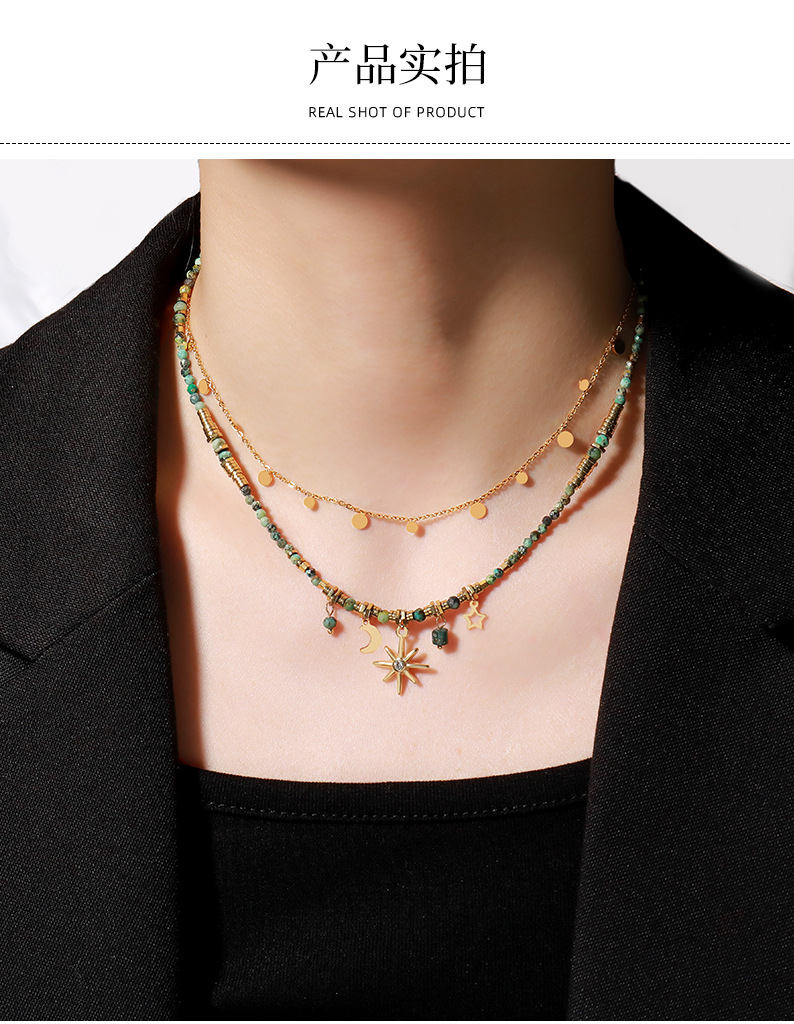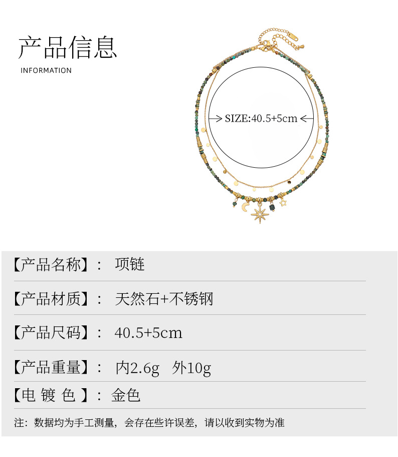 复古彩色天然石手工串珠项链小众设计黄铜叠戴锁骨链星星吊坠颈链