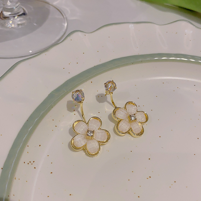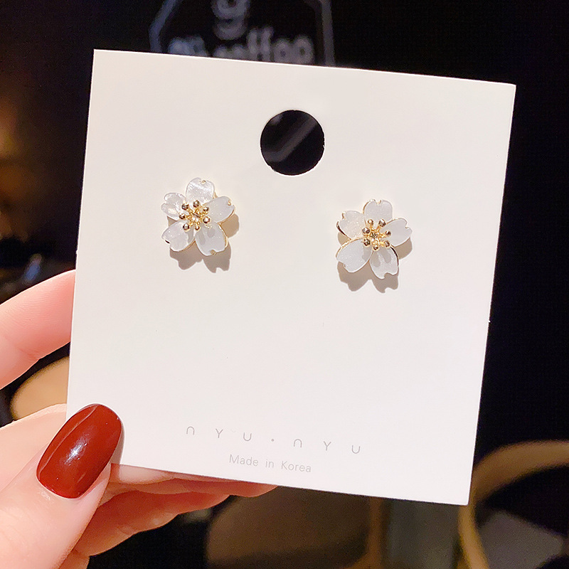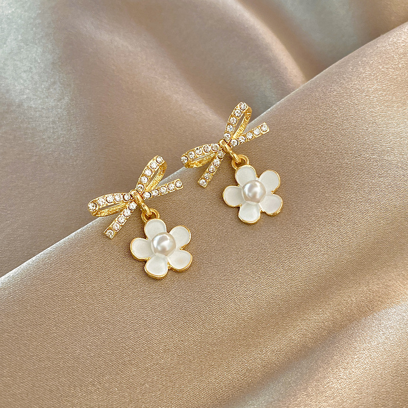 s925银针纯白花卉耳环女小香风花朵珍珠耳钉韩式夏季高级感耳饰潮