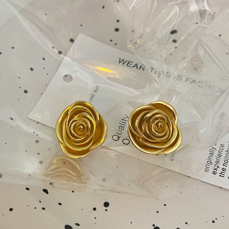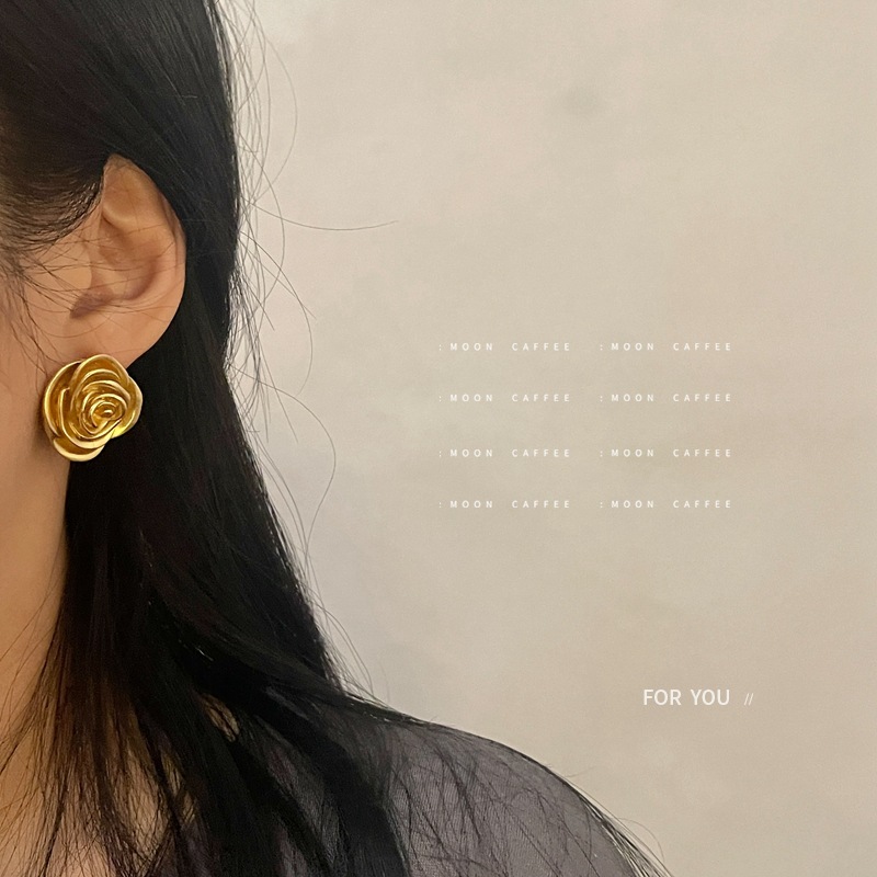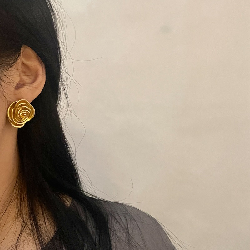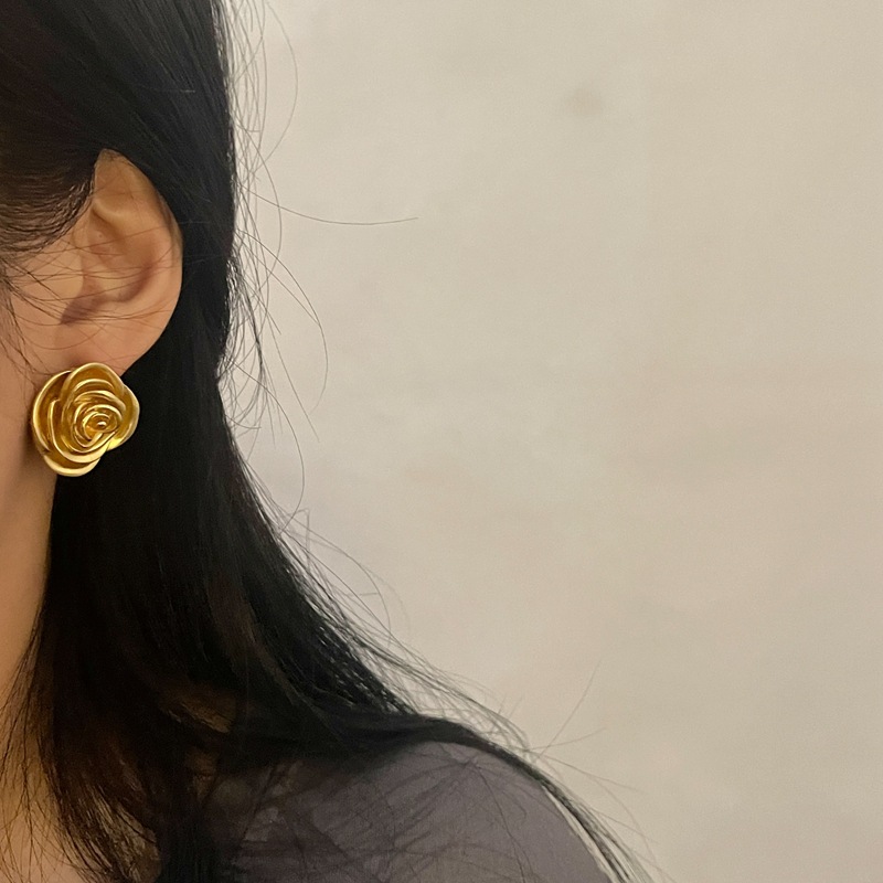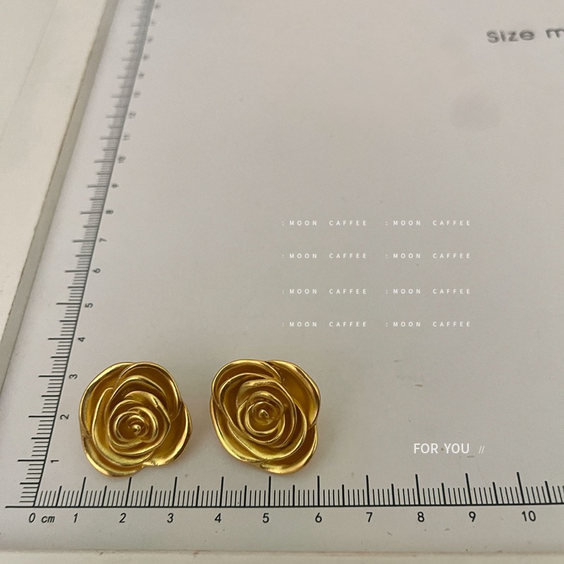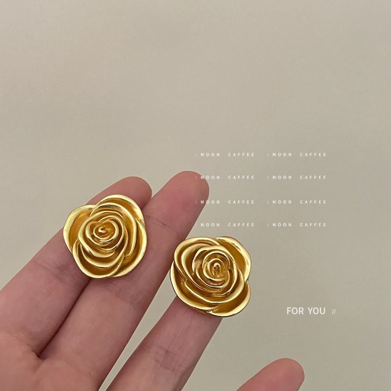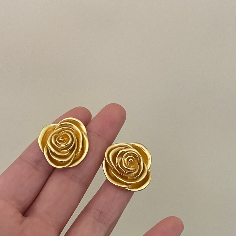 法式复古金色玫瑰耳钉高级感轻奢风银针镀真金小众中古气质精致女