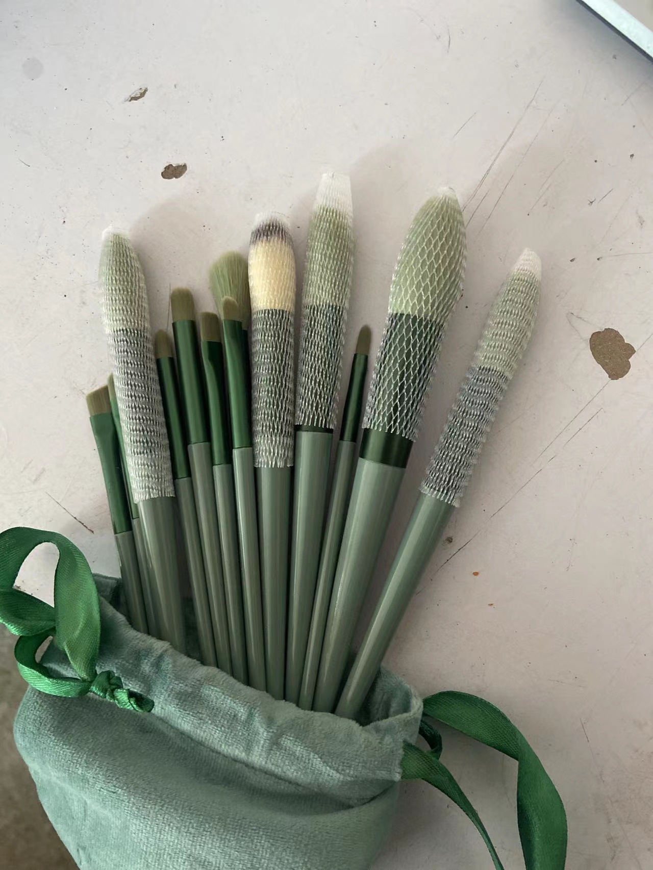 13支绿云四季青抹茶绿化妆刷套装眼影刷腮红刷粉底刷眼线刷套装