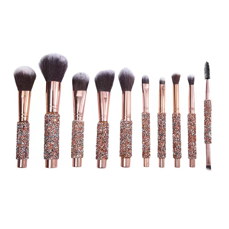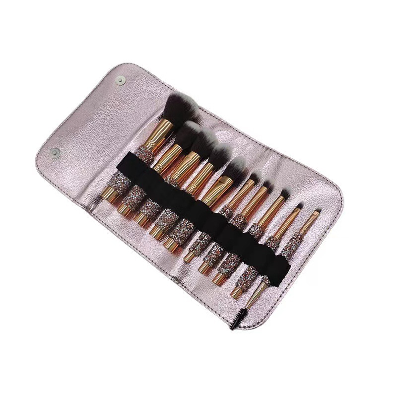 10支镶钻化妆刷 跨境美妆工具 十支钻石化妆刷套装带包厂家直供