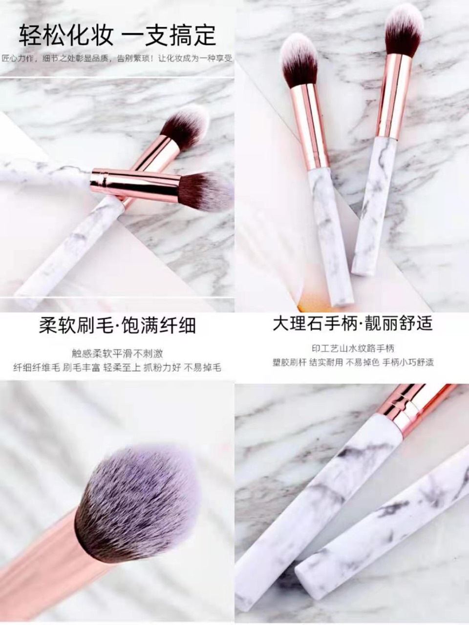 跨境 单支大理石化妆刷纹火苗修容高光腮红刷 初学者粉刷美妆工具