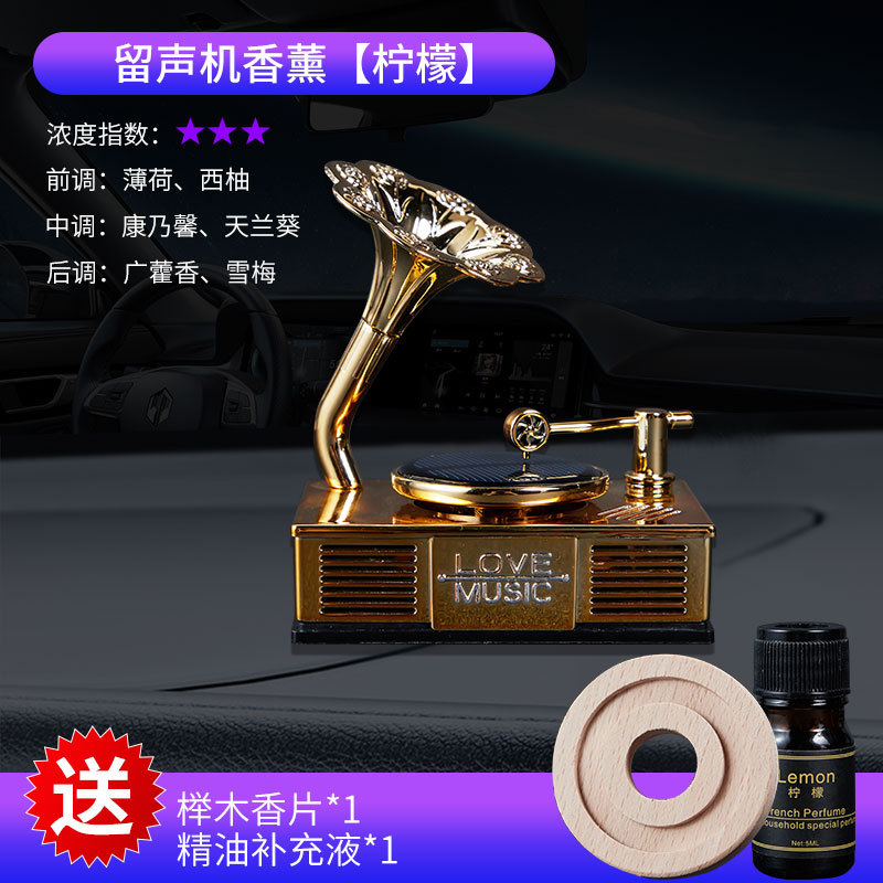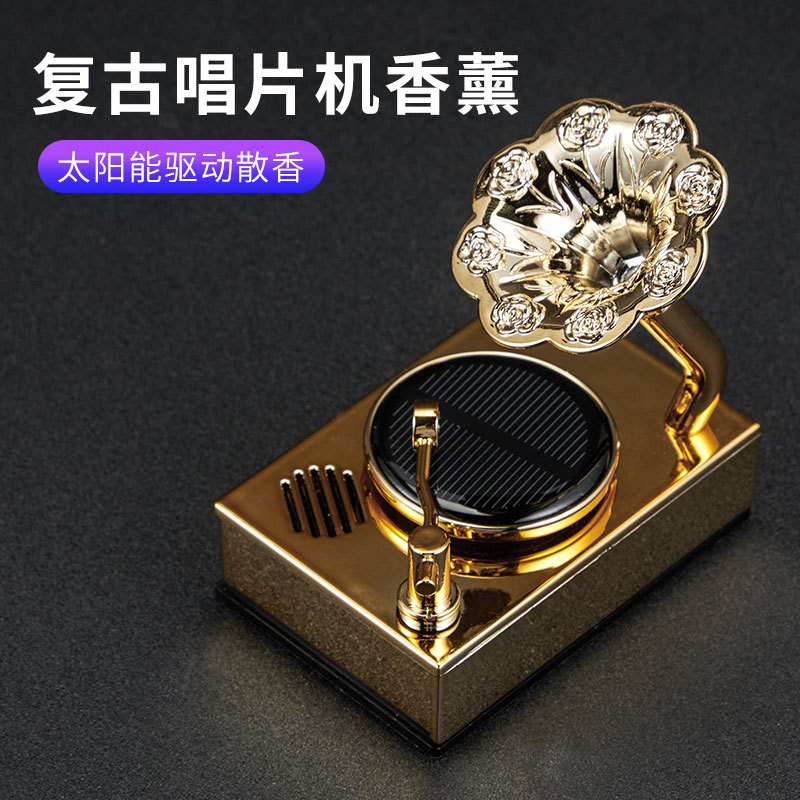 车载太阳能留声机香水摆件 旋转唱片精油香薰 机车内饰用品芳香座