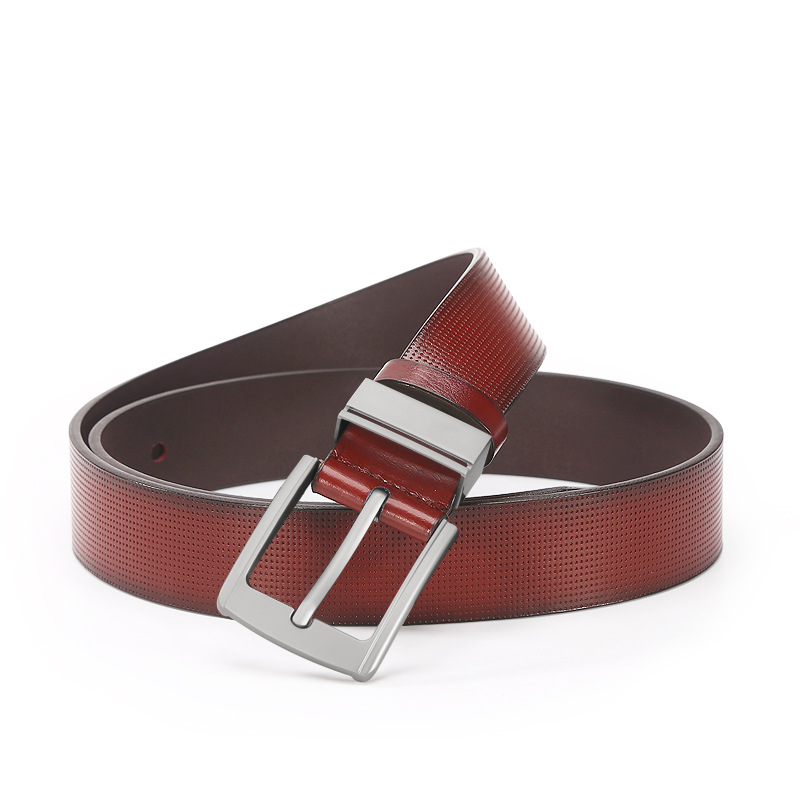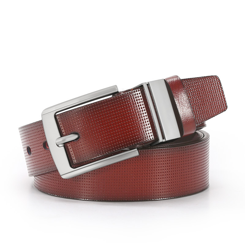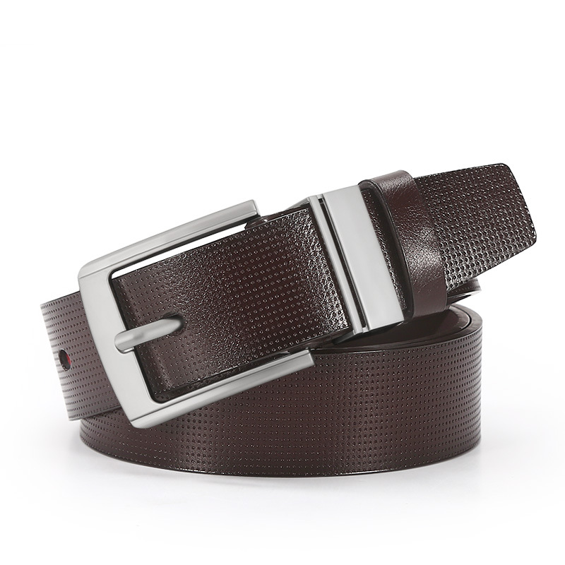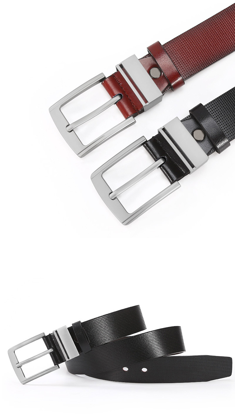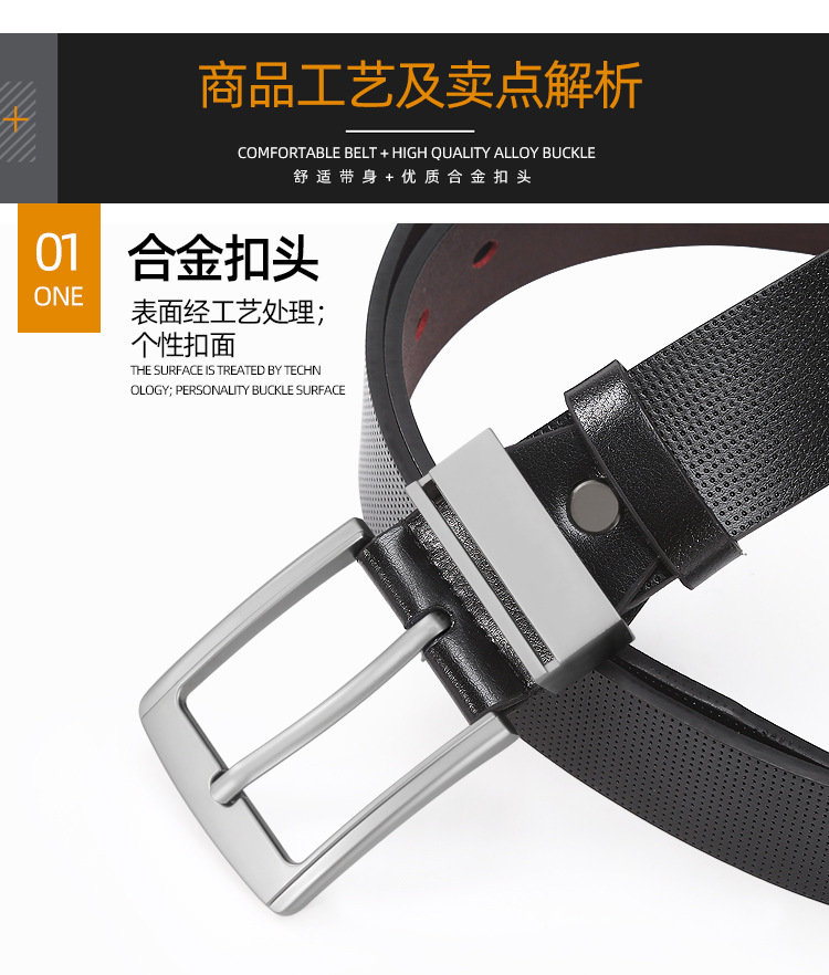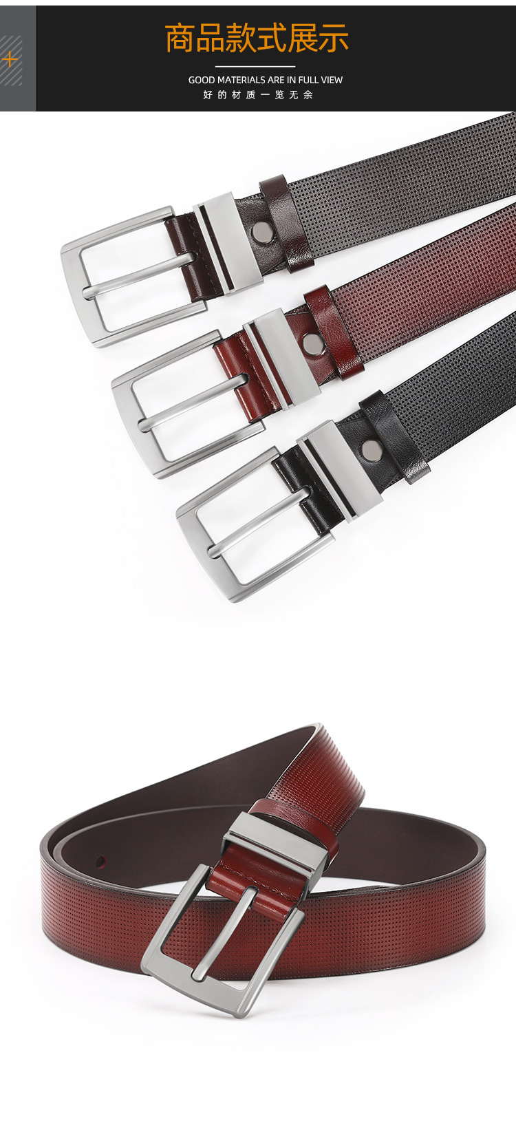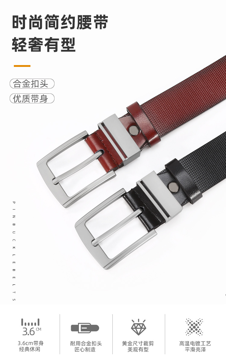 新款高端皮带男士合金针扣纯色牛皮腰带百搭休闲裤带皮带厂家批发