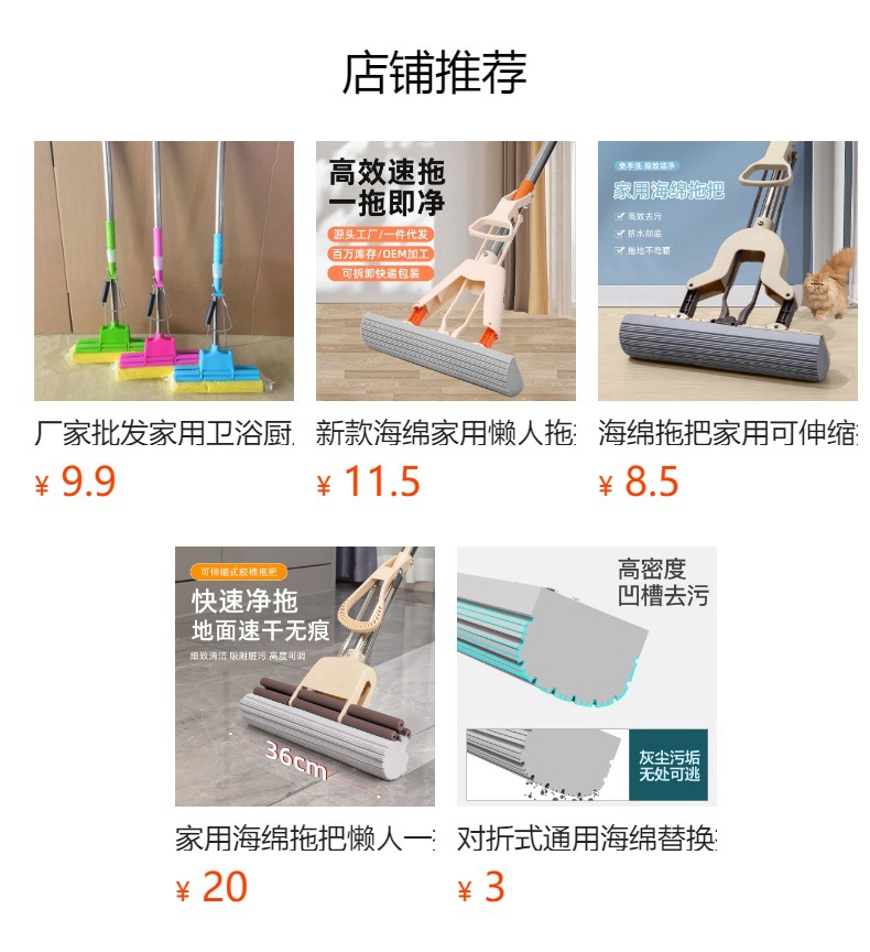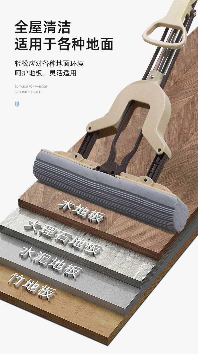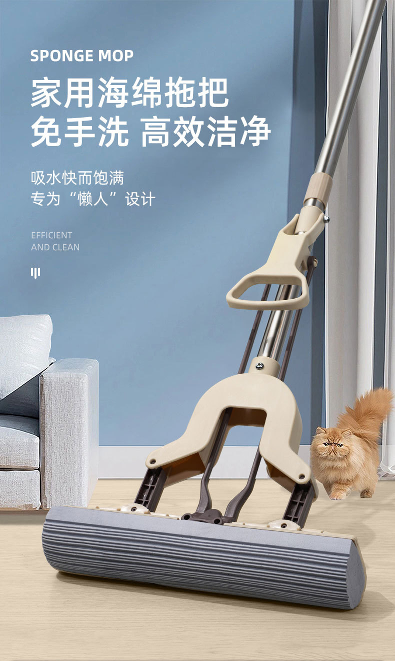 海绵拖把家用可拆卸懒人拖把免手洗滚轮吸水拖把Sponge Mop