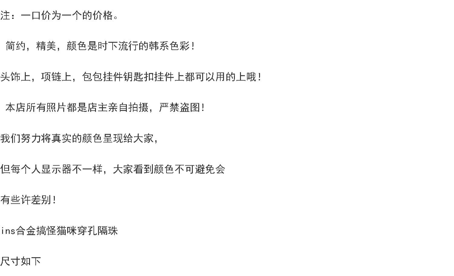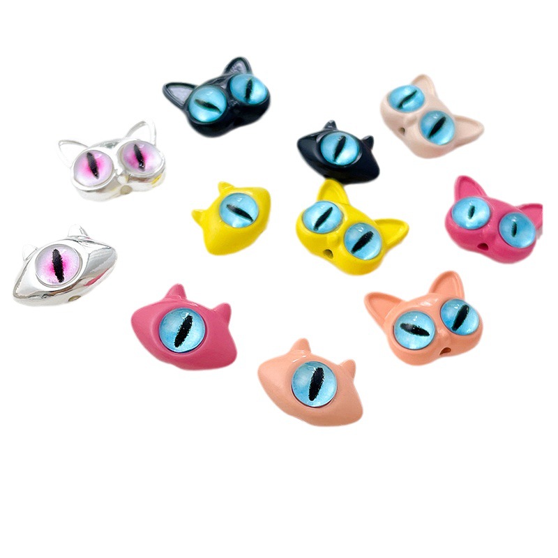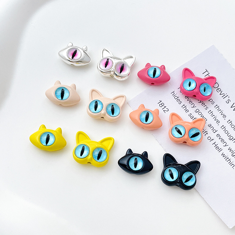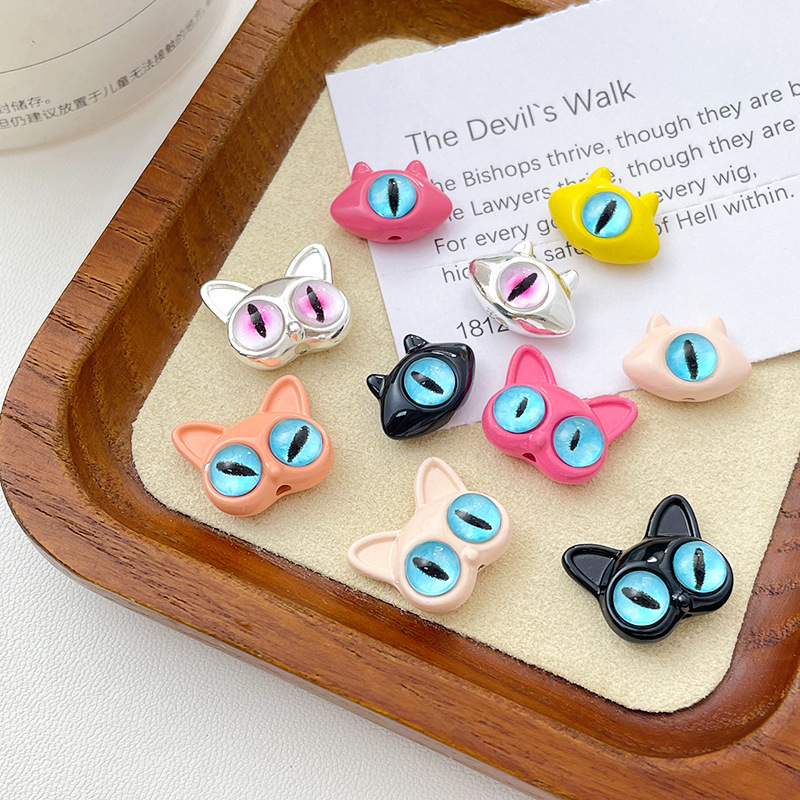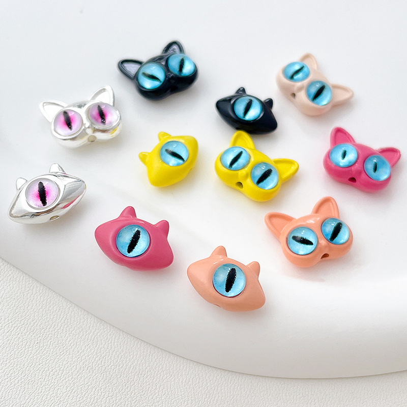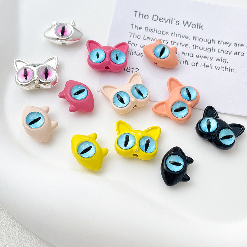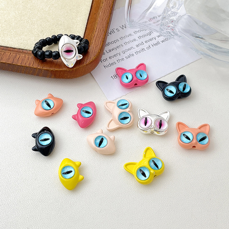 搞怪猫咪小怪兽卡通穿孔隔珠独特个性合金串珠手链戒指项链配件